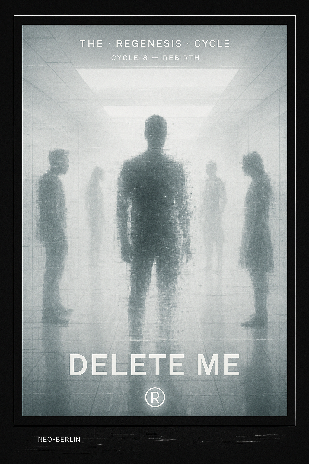 To be reborn, you must first vanish. In Neo-Berlin, digital resurrection becomes a black-market art form, as erased citizens rebuild their souls through corrupted code.