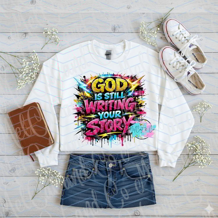 This bold, luxe faith typography design blends modern street-inspired lettering with radiant sparkle details and a symbolic open Bible, creating a statement piece that speaks both faith and confidence. Designed to stand out, this artwork is perfect for Christian creatives, faith-based brands, and anyone who wants their beliefs to shine unapologetically.