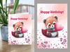 Send a little love with this adorable printable birthday card featuring a sweet panda holding a heart balloon! Soft pink and purple tones, floral accents, and cozy vibes make this card the perfect choice for panda lovers of all ages.