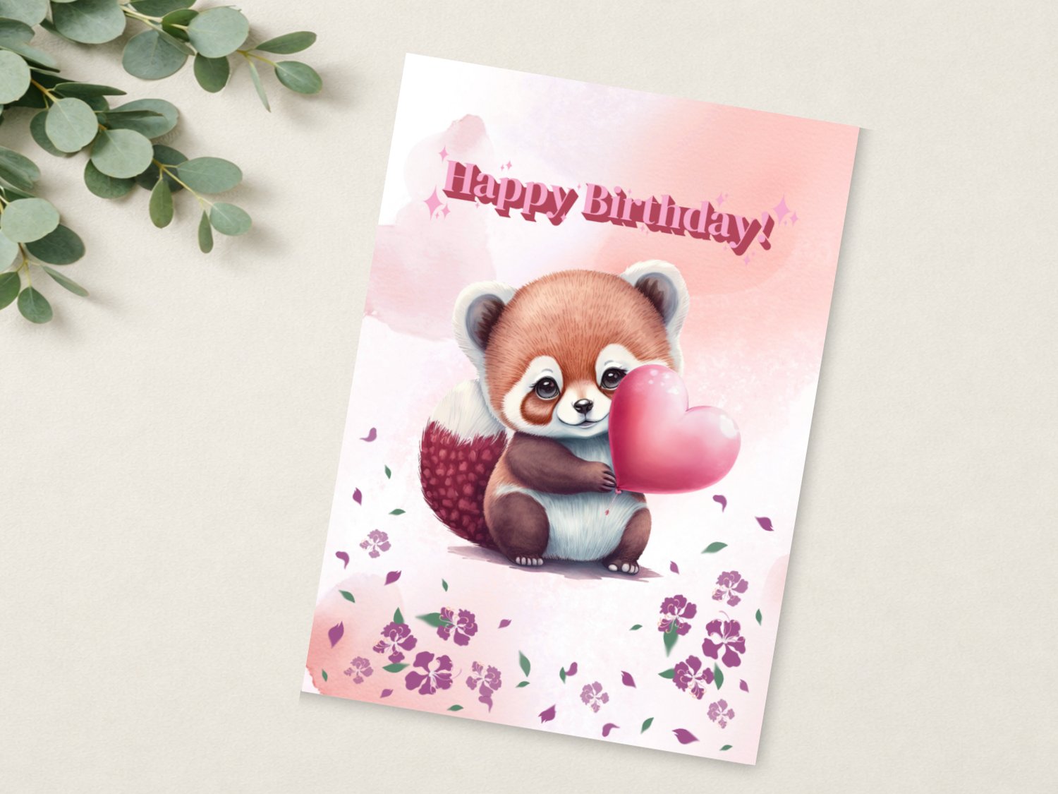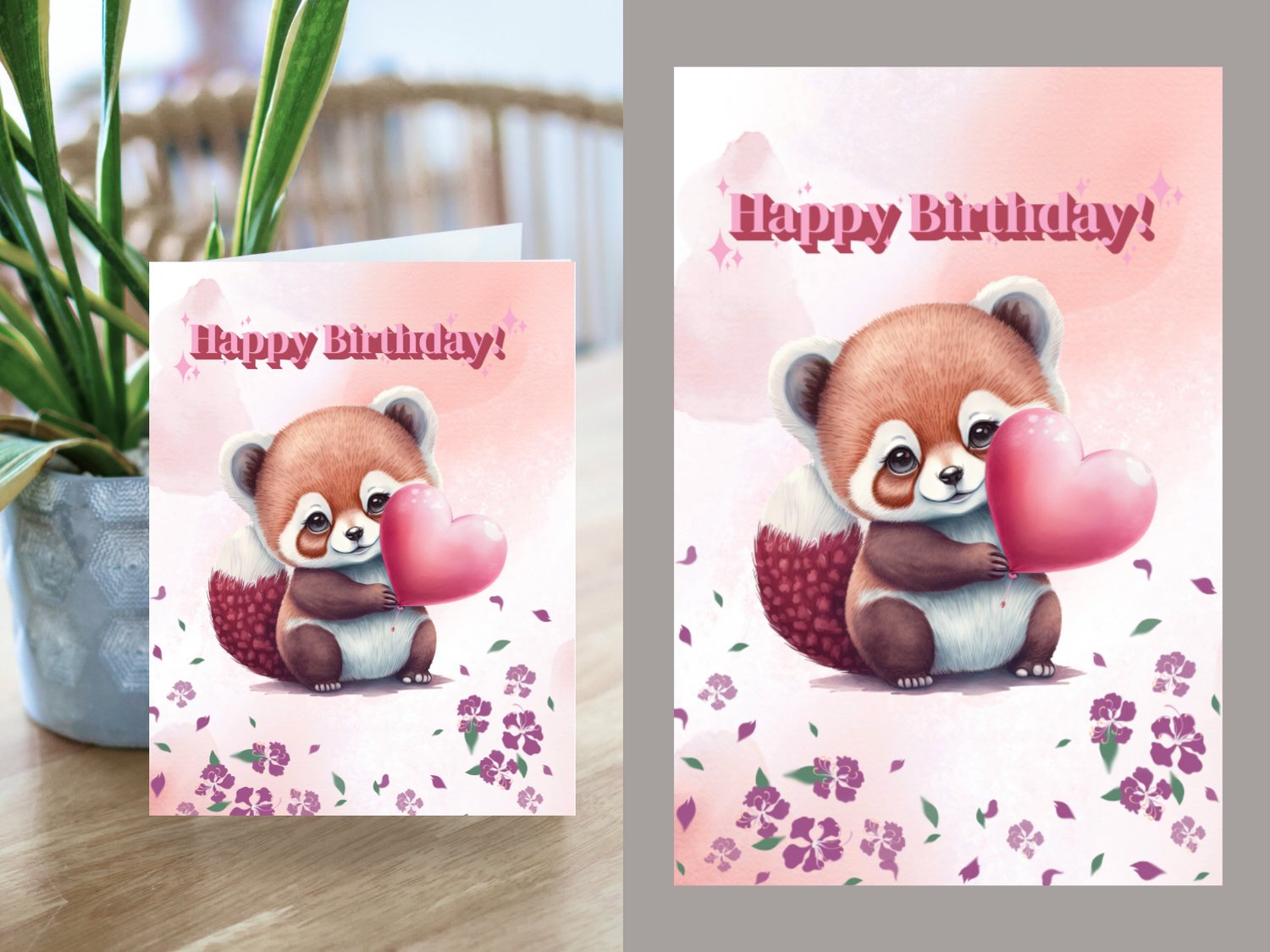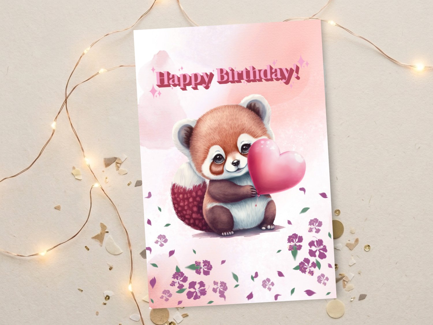 Red Panda Birthday Card β Printable Folded Card with Heart Balloon