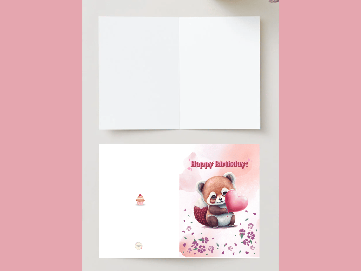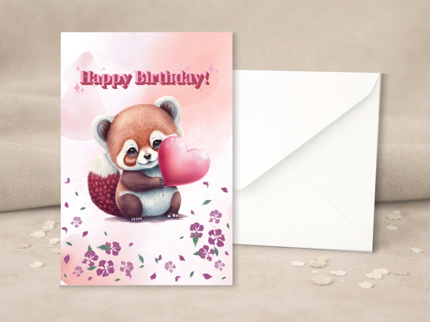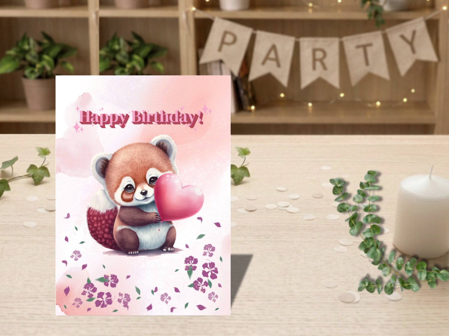 Red Panda Birthday Card β Printable Folded Card with Heart Balloon