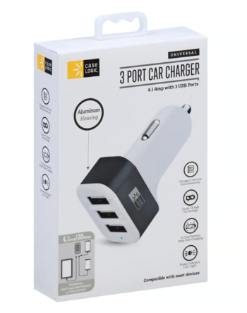 4.1 amp with 3 USB ports. Aluminum housing. Chargers 3 devices simultaneously. Quick charge technology. IC chip protects from over-charging. Power indicator LED light. Compatible with most devices. 4.1 amp/20 watts. Powered for tablet and 2 smartphones or 3 smartphones. Life, simplified. 4.1 amp/20 watts universal USB for smartphones, tables, GPS, gaming devices and music players. Power light indicator. Input: 12V - 12V. Output: 5V - 4.1 amp. CE Listed.