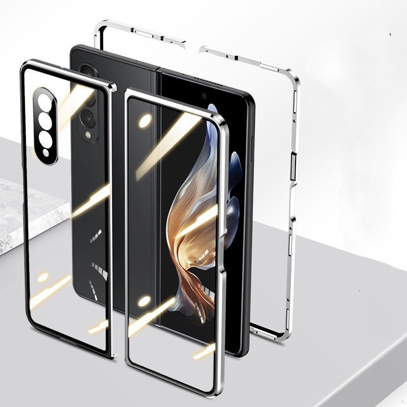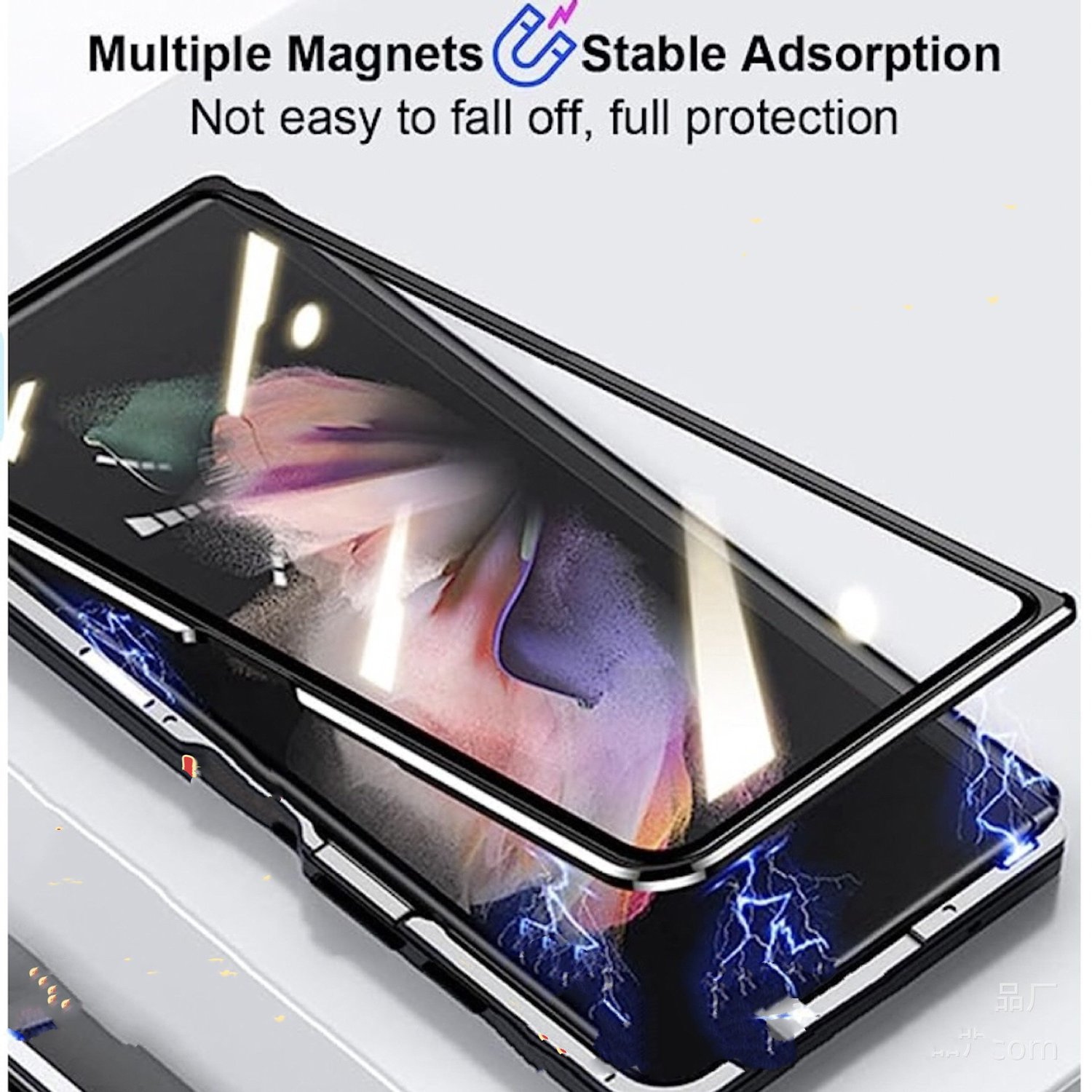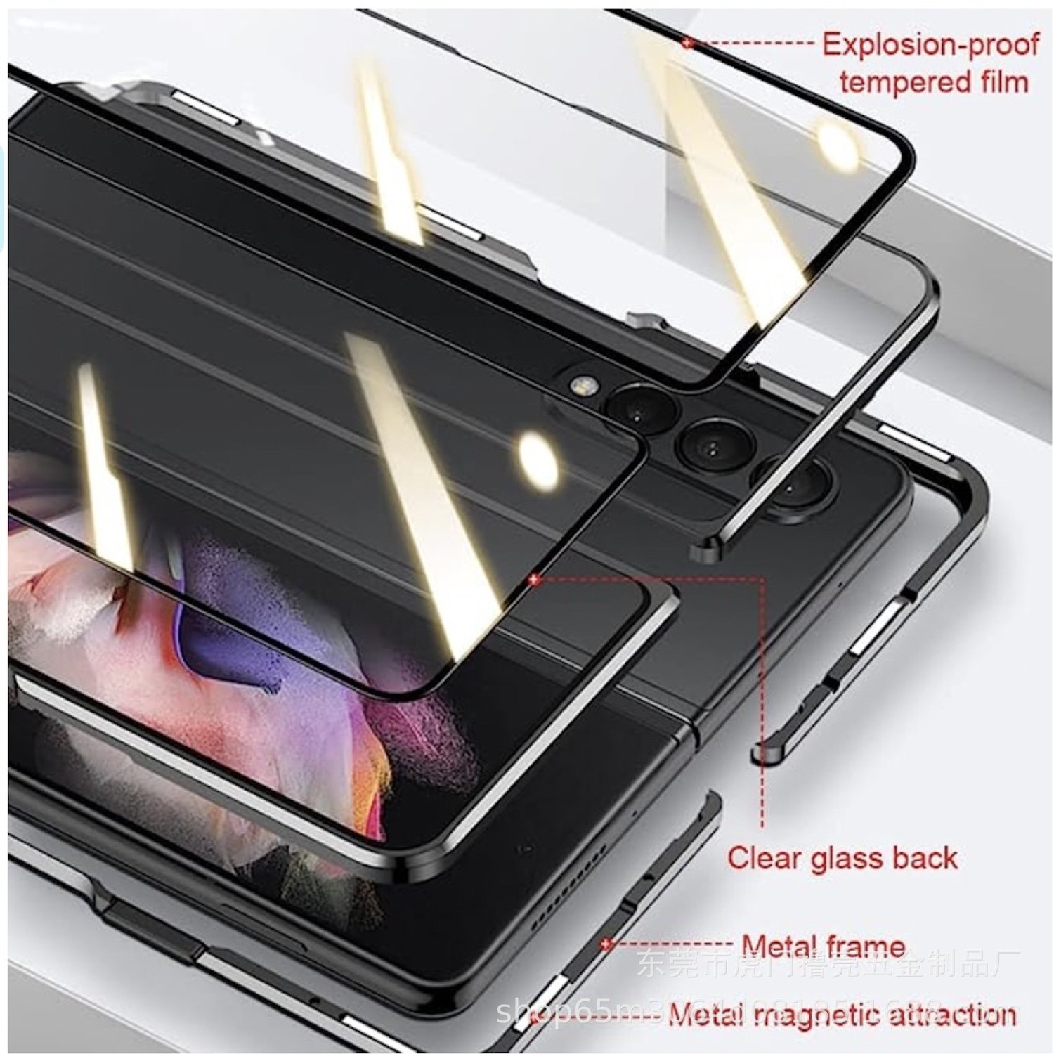 Compatible Samsung Galaxy Z Fold 5 Z Fold 4 Z Fold 3Phone Case Magnetic Metal Double-sided Transparent Tempered Glass Shockproof Protective Cover Galaxy Z Fold 5 4 3