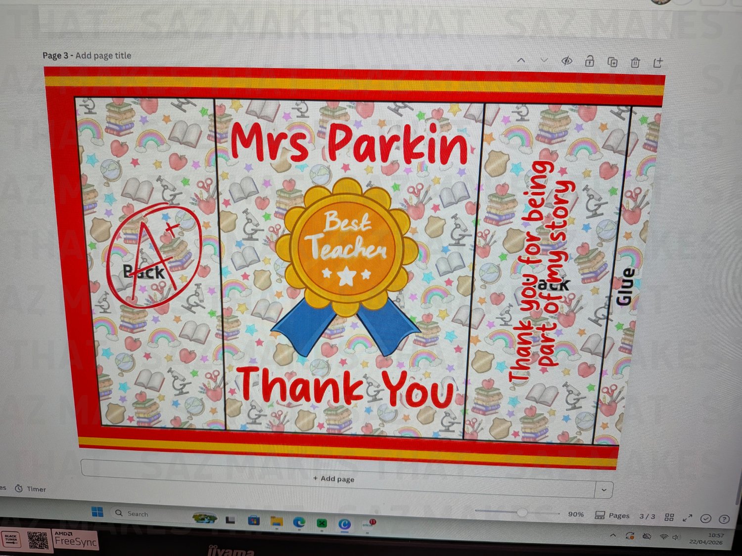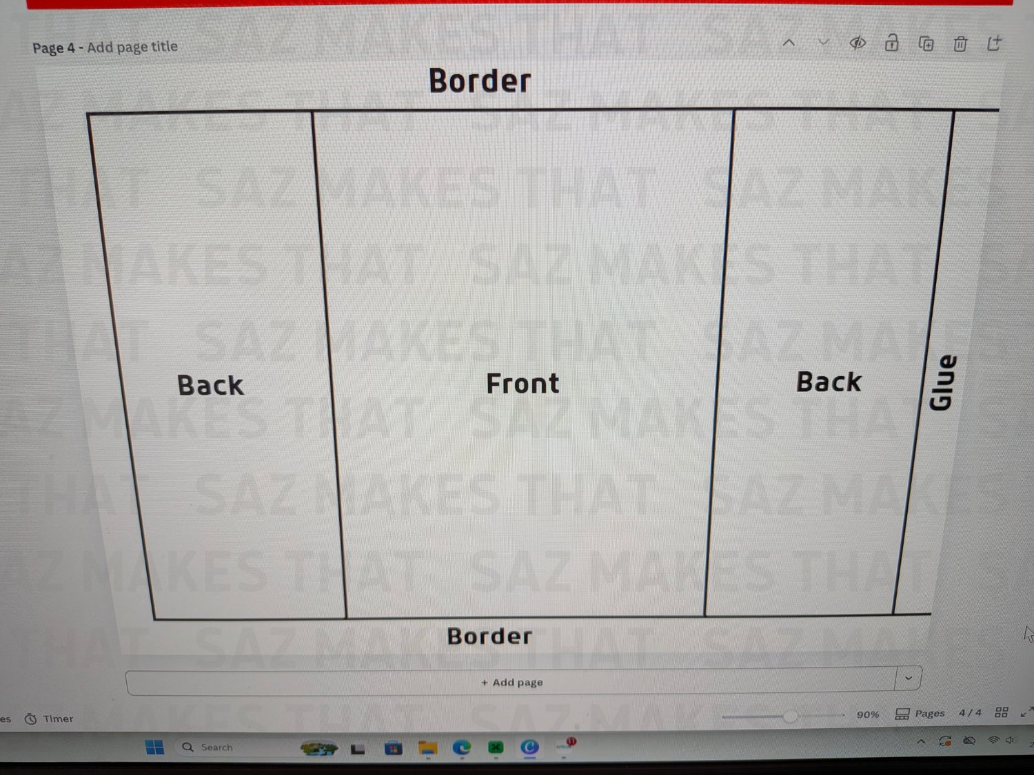add the template to an A4 landscape page on canva, afffinity designer or similar design software and drag the corners out until it fills the page as shown in the pictures above, add your design in the correct spaces then you can remove the template and print your page.