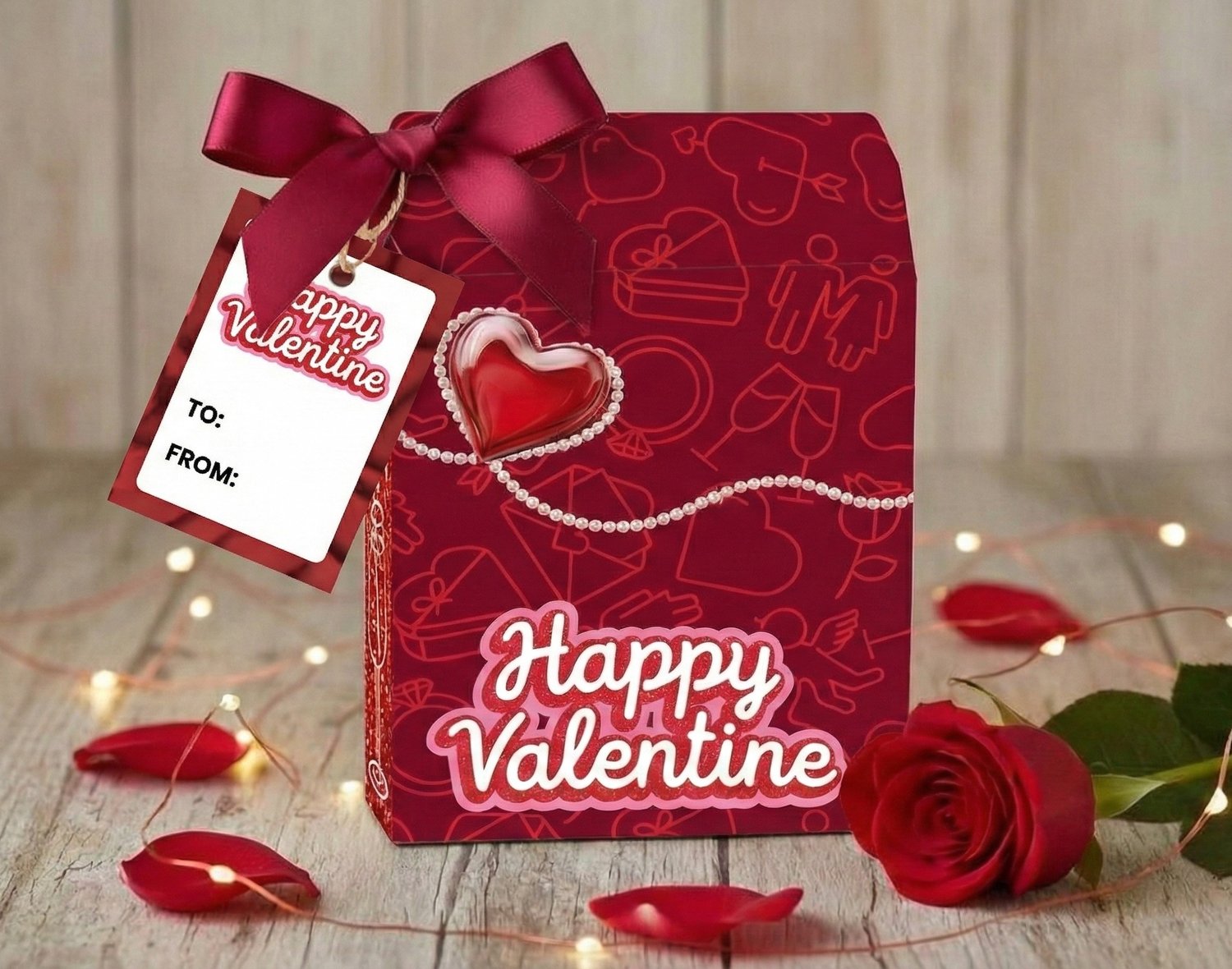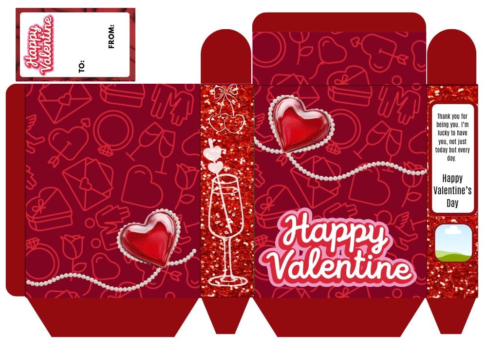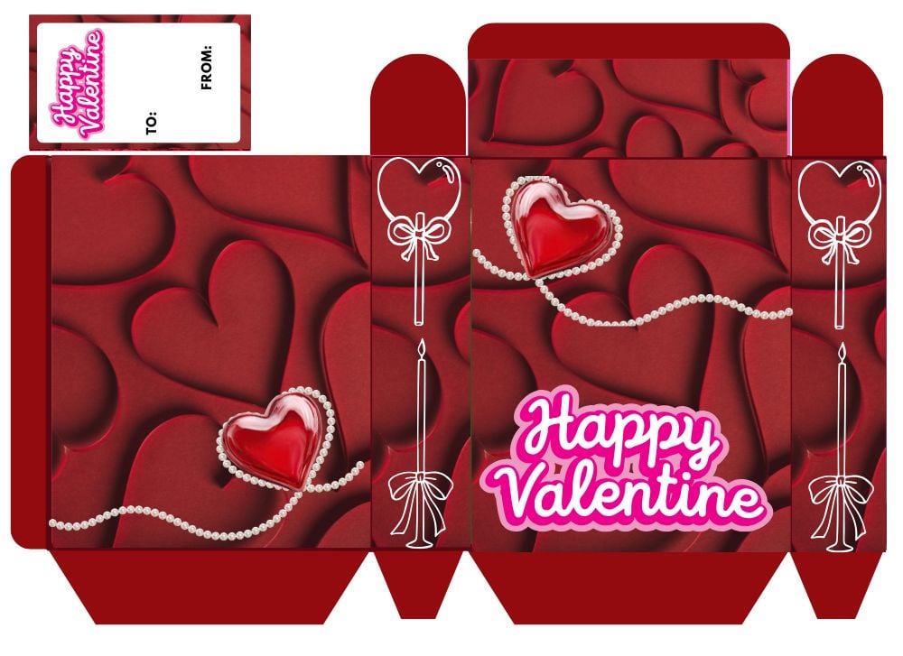 Printable Valentine's Day Treat Box Bundle with To/From Tags, DIY Paper Favor Box, Heart Candy Box Template, Instant Download