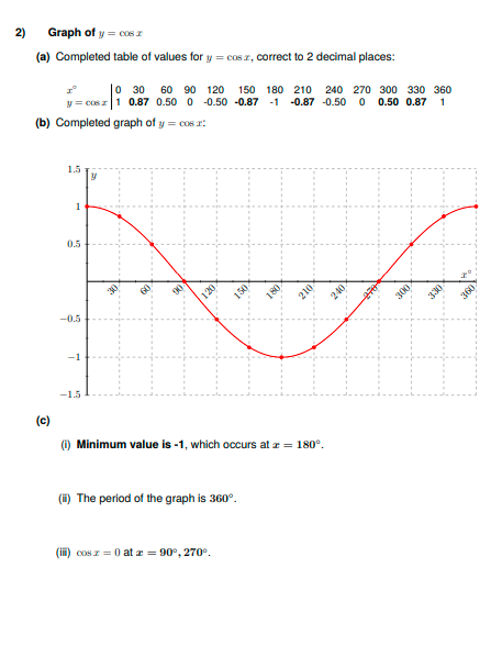 IGCSE Extended Level Maths: Graphs of Trigonometric Functions (Worksheet & Model Answers)