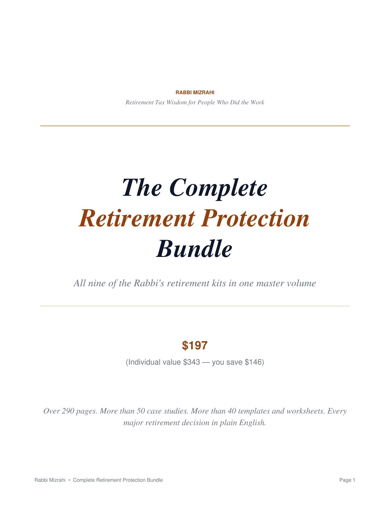 The Complete Retirement Protection Bundle contains all nine of my individual kits plus two bundle-exclusive bonuses you cannot buy anywhere else.