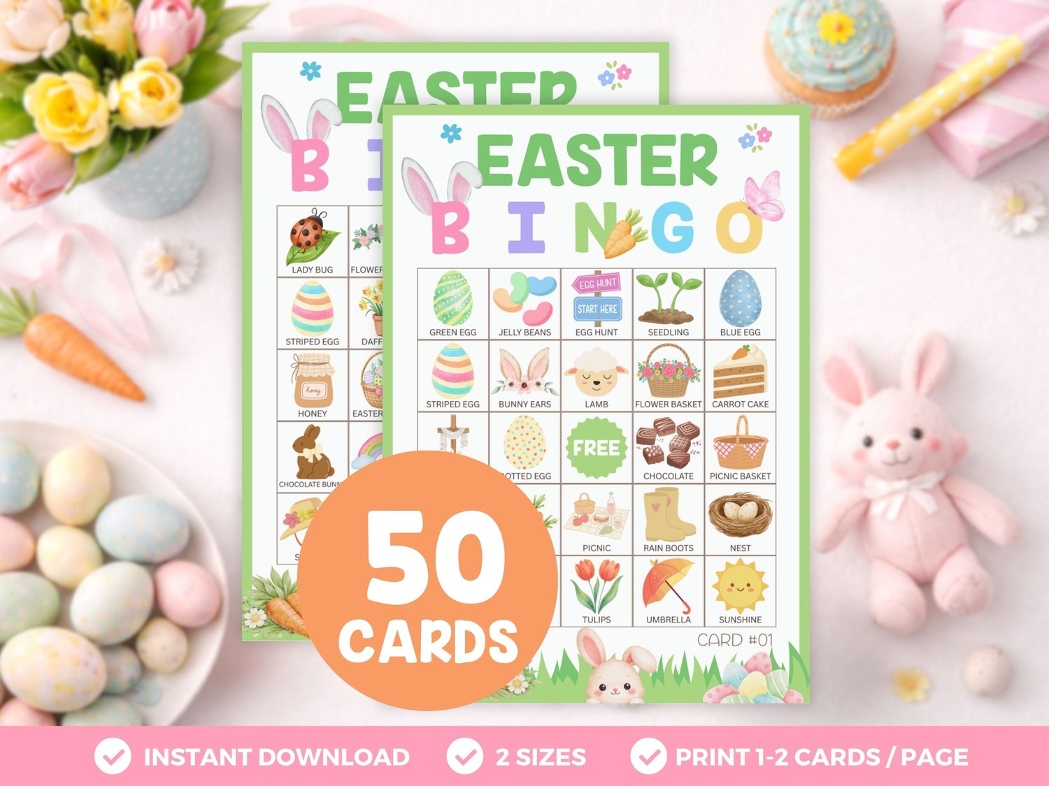 ✔️ 50 Unique Easter Bingo Cards