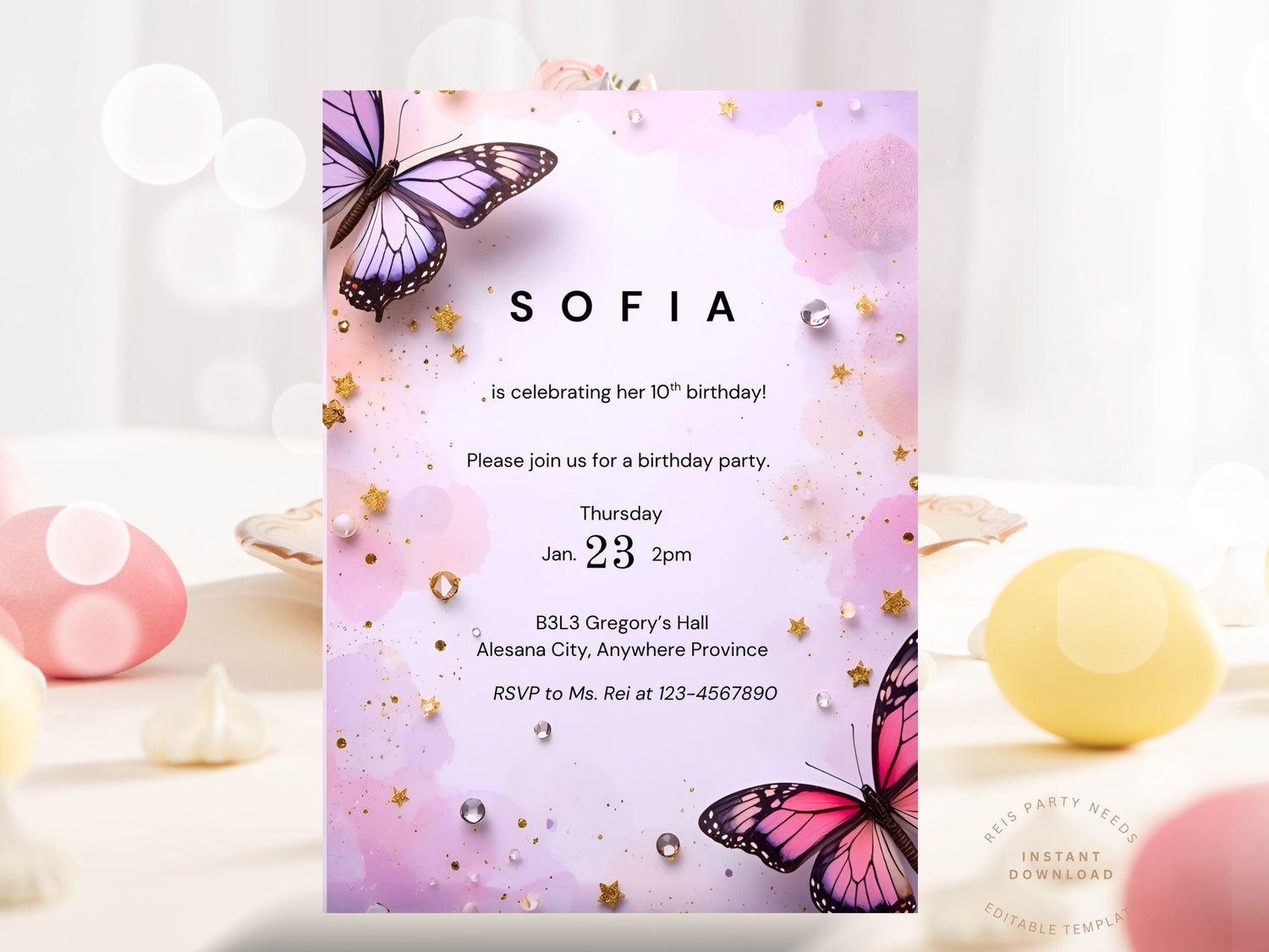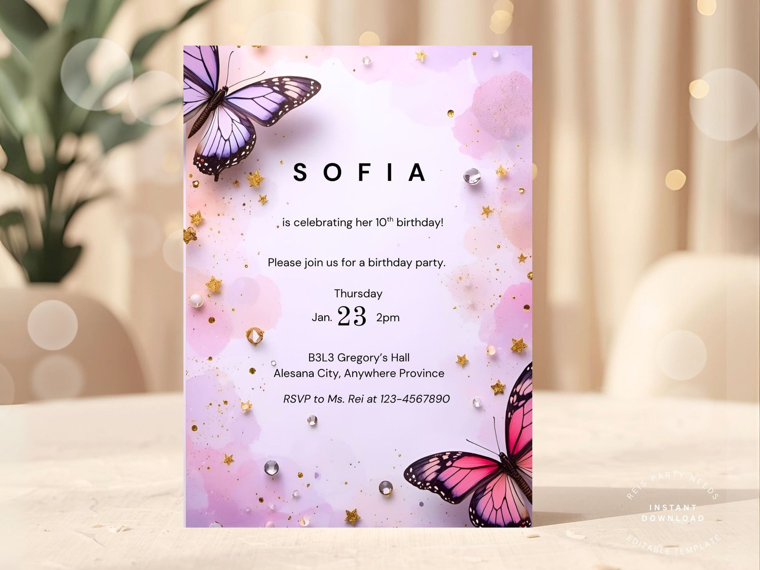Butterfly Birthday Invitation, Aesthetic Girl Butterfly Party, Elegant Purple Butterfly Birthday Invite, First Birthday Invitation