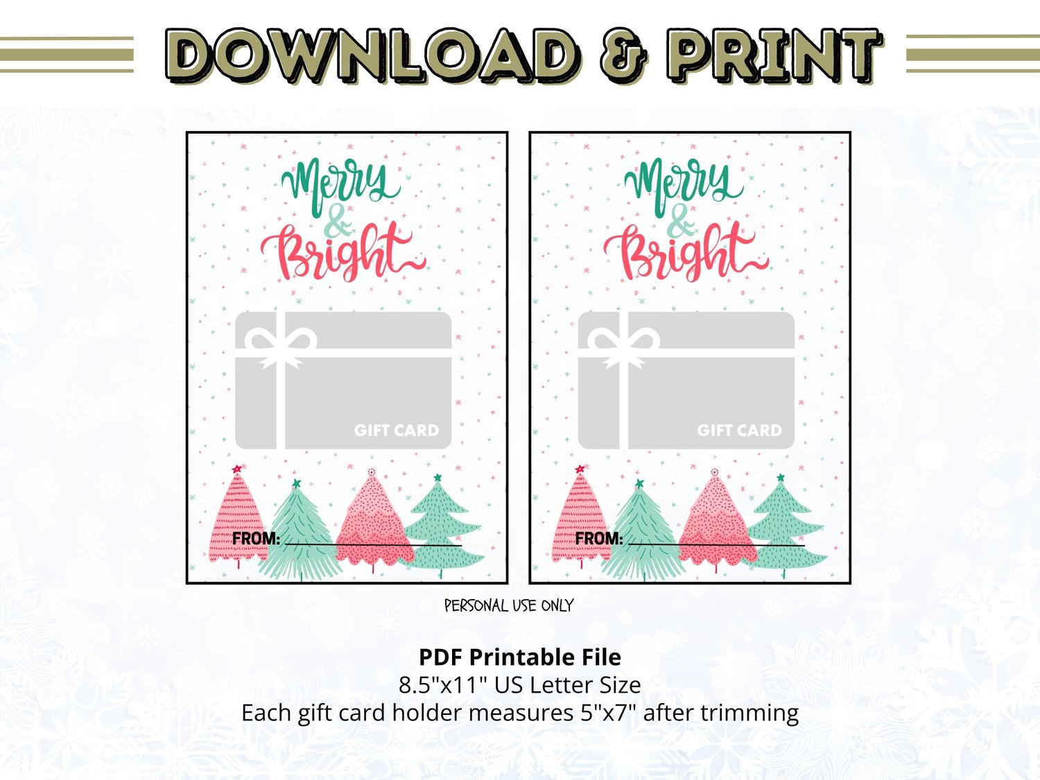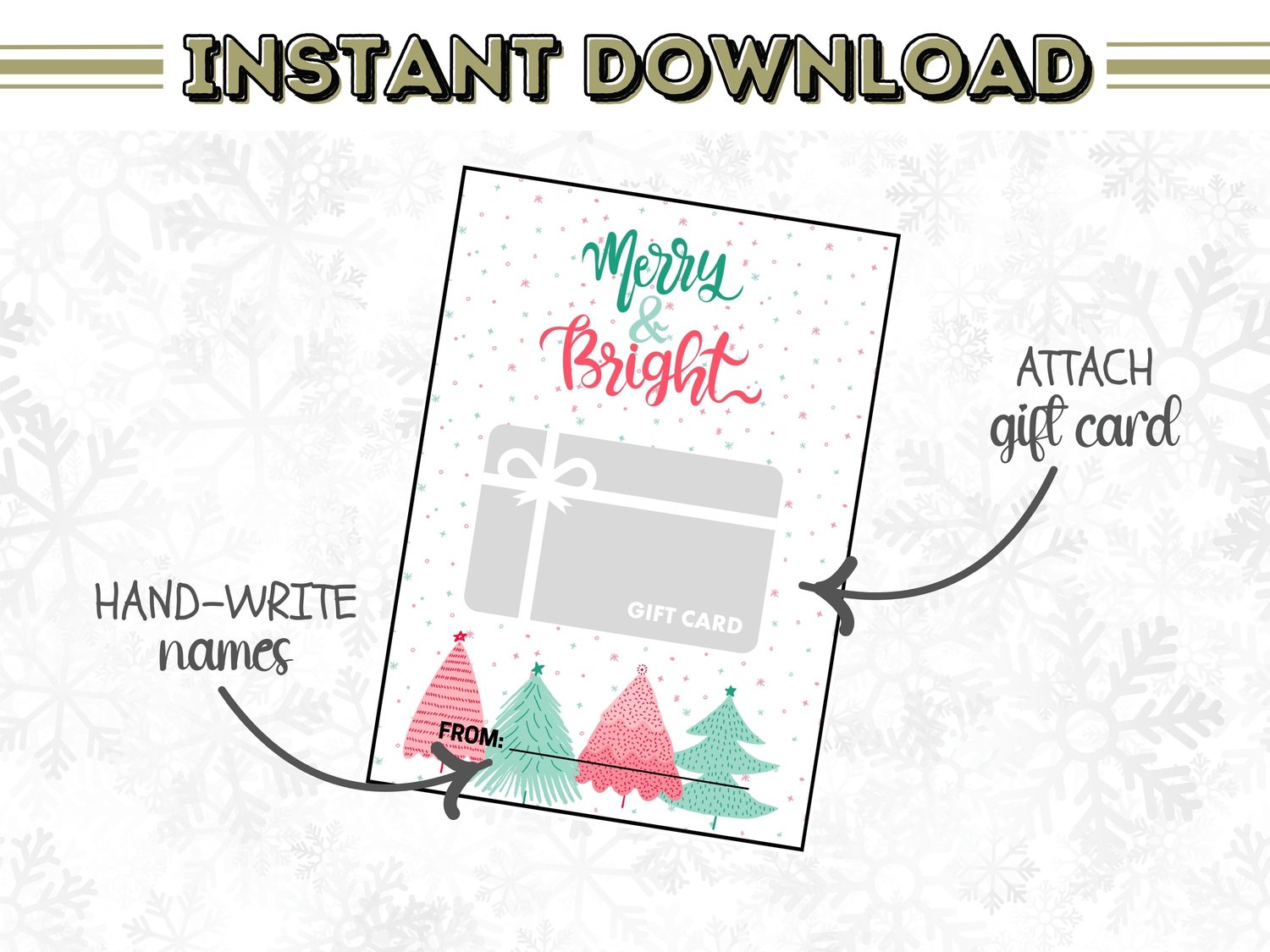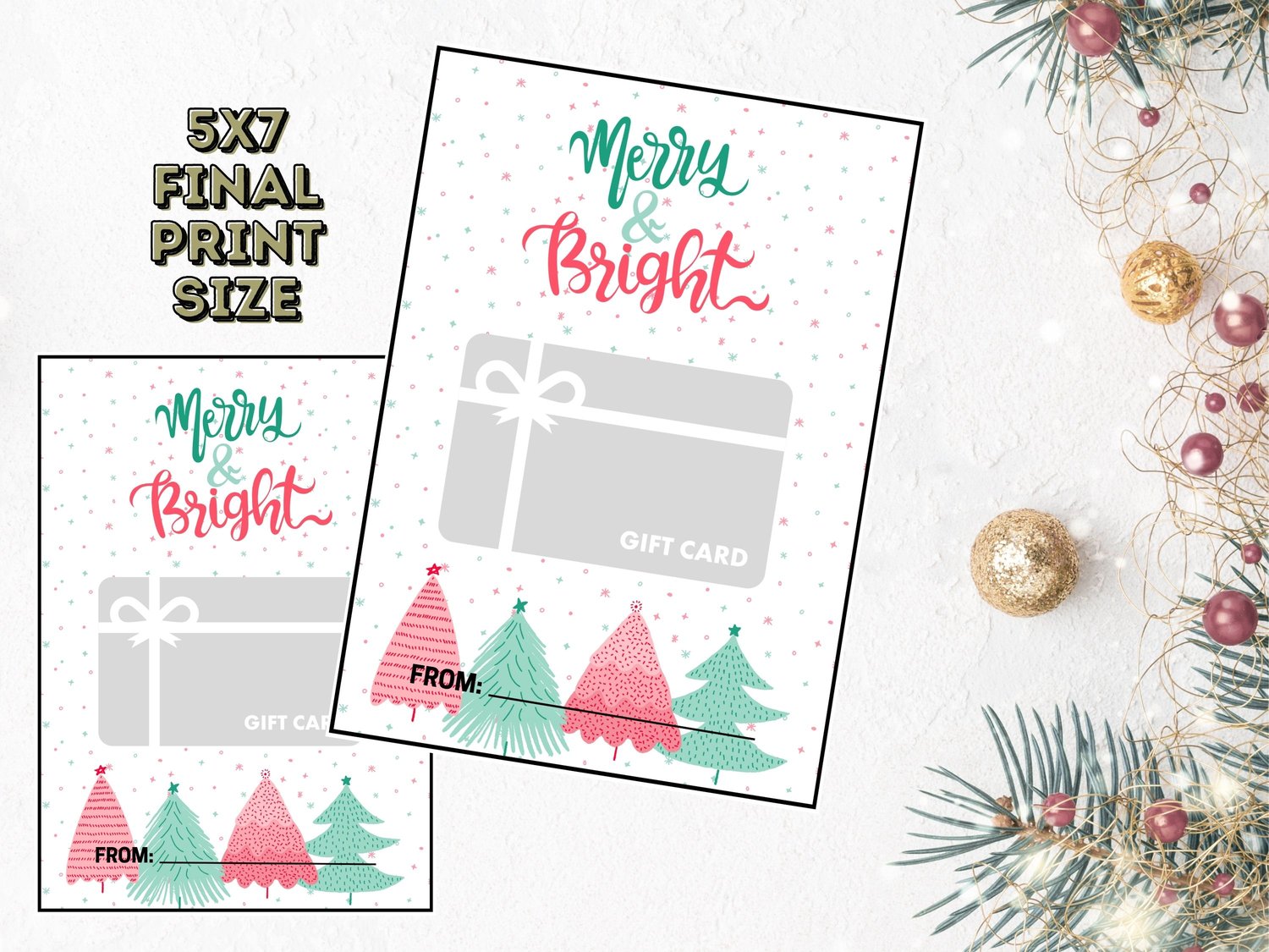 Merry & Bright Christmas Gift Card Holder Printable – Holiday Gift Card Template – Instant Download