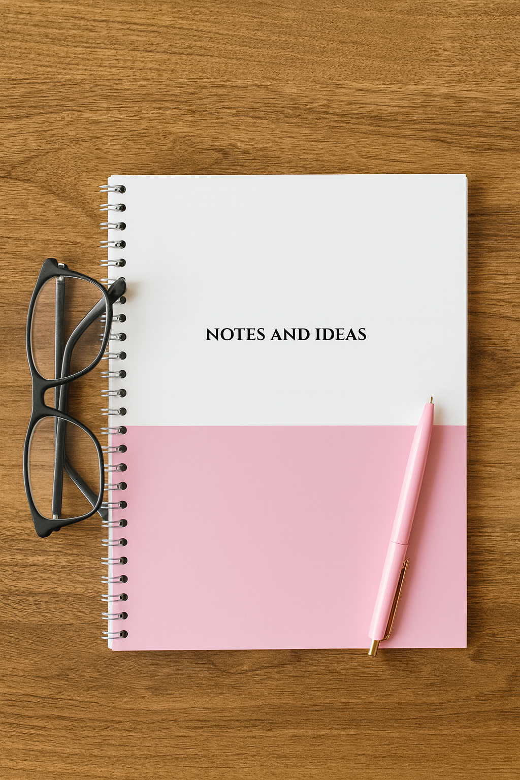 This elegant pink and white “NOTES AND IDEAS” notebook is perfect for organizing your thoughts, plans, goals, and daily inspirations. With its clean minimal design and soft aesthetic colors, it’s ideal for students, creatives, entrepreneurs, and anyone who loves beautiful stationery.