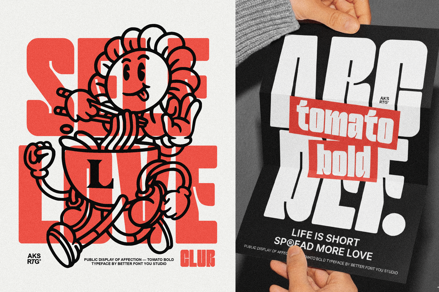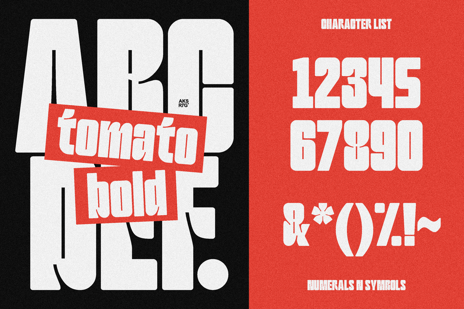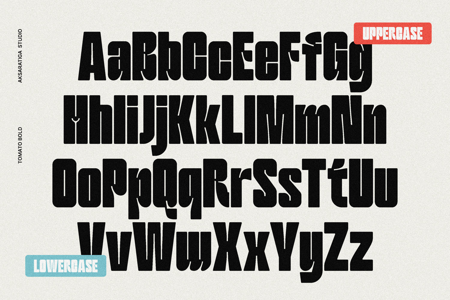 Tomato Bold is a bold and unique display font by Aksaratiga Studio. Perfect for headlines, posters, and branding that need strong, eye-catching typography. Tomato Bold is ready to bring a powerful yet playful touch to all your designs