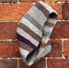 This striped cowl is designed to use up the very last bits of yarn from your projects. The sample shows evenly spaced stripes, but you can vary the stripe width to use up lengths of just a few metres and create a cowl that is unique.