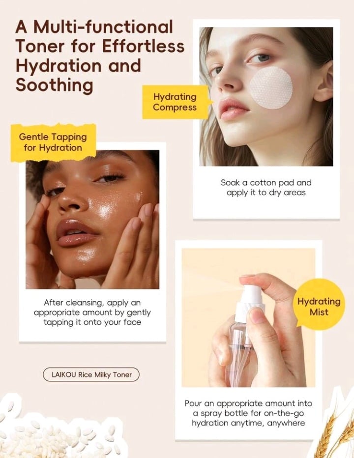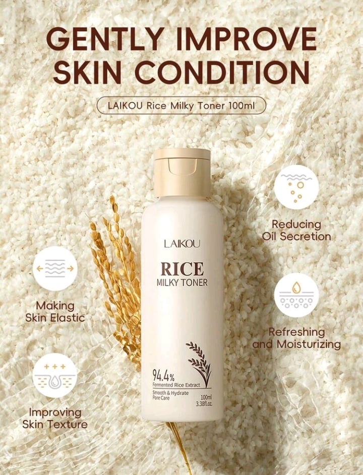 5pcs Anti-Oxidation LAIKOU Rice Skincare Set, SPF 50+ Sunscreen & Hydrating Toner & Smoothing Facial Cream & Non Irritating Face Wash & Anti-Aging Facial Serum Firming Skin Care Set Gift For Mom Facial Care SPA