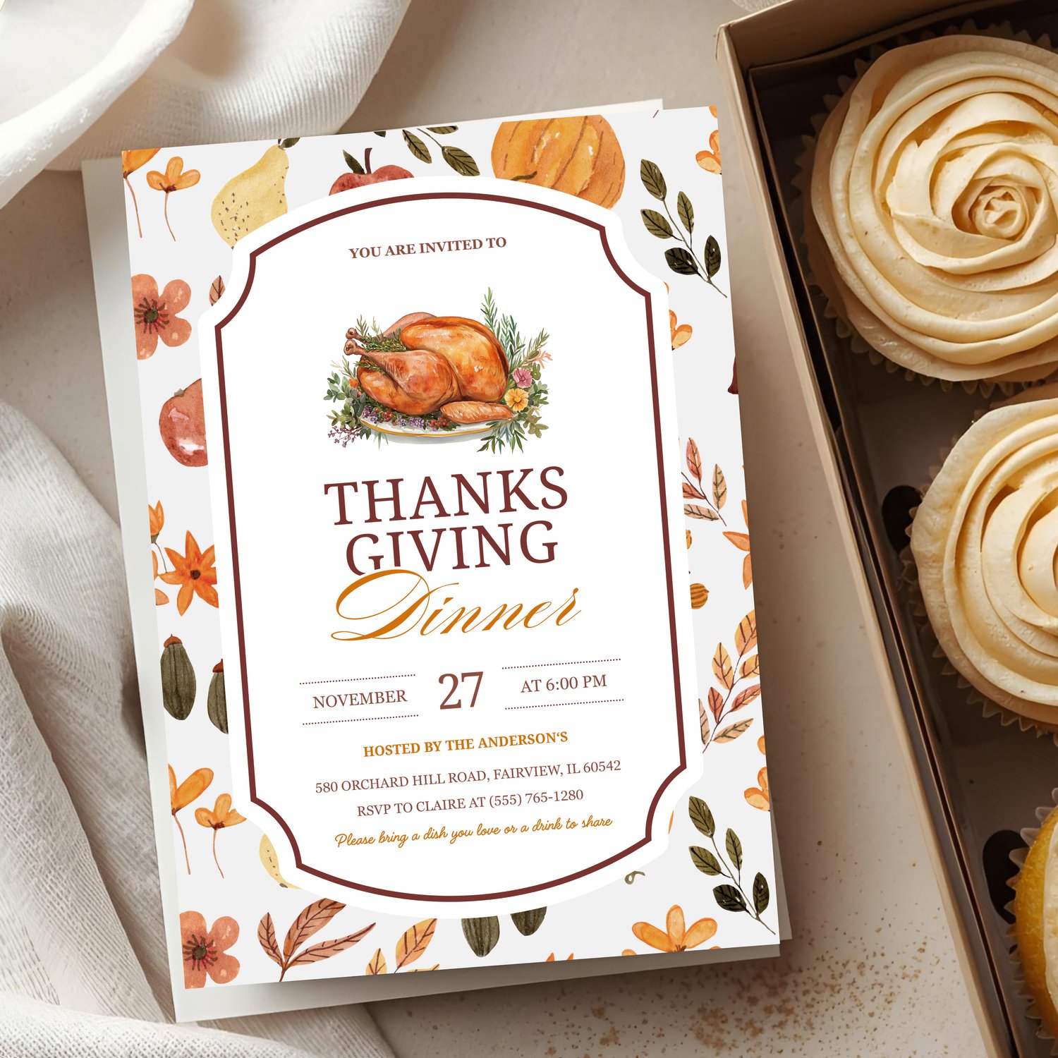 5️⃣ Print at home, at a print shop, or send as a digital fall dinner evite.