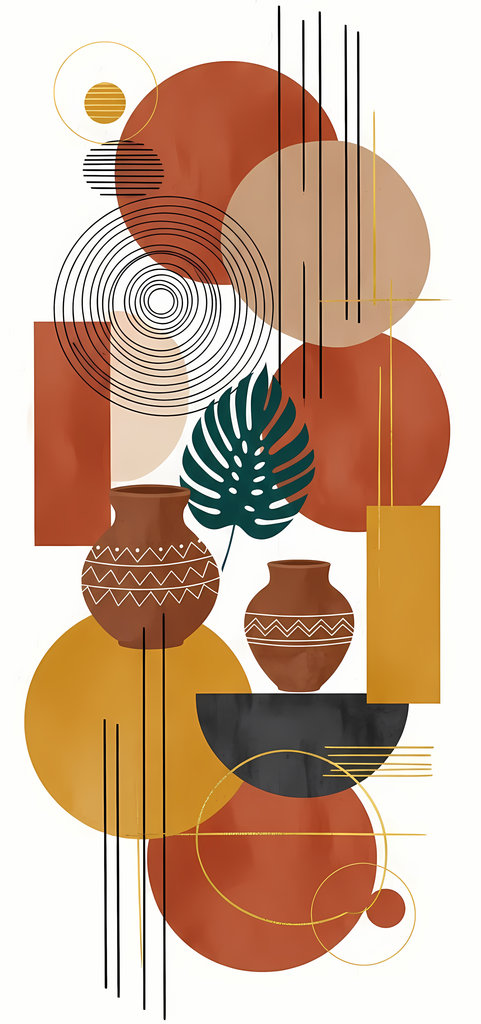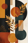 The designs combine geometric shapes with organic elements, creating a modern yet earthy feel. The color palette is centered around rich, warm tones for a contemporary boho look, with hints of mustard for contrast. Whether you're designing for home décor, branding, greeting cards, or digital art projects, these versatile illustrations will enhance any creative project with their stylish and unique flair.