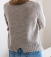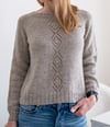 The sweater is worked seamlessly from top down and requires minimal finishing.