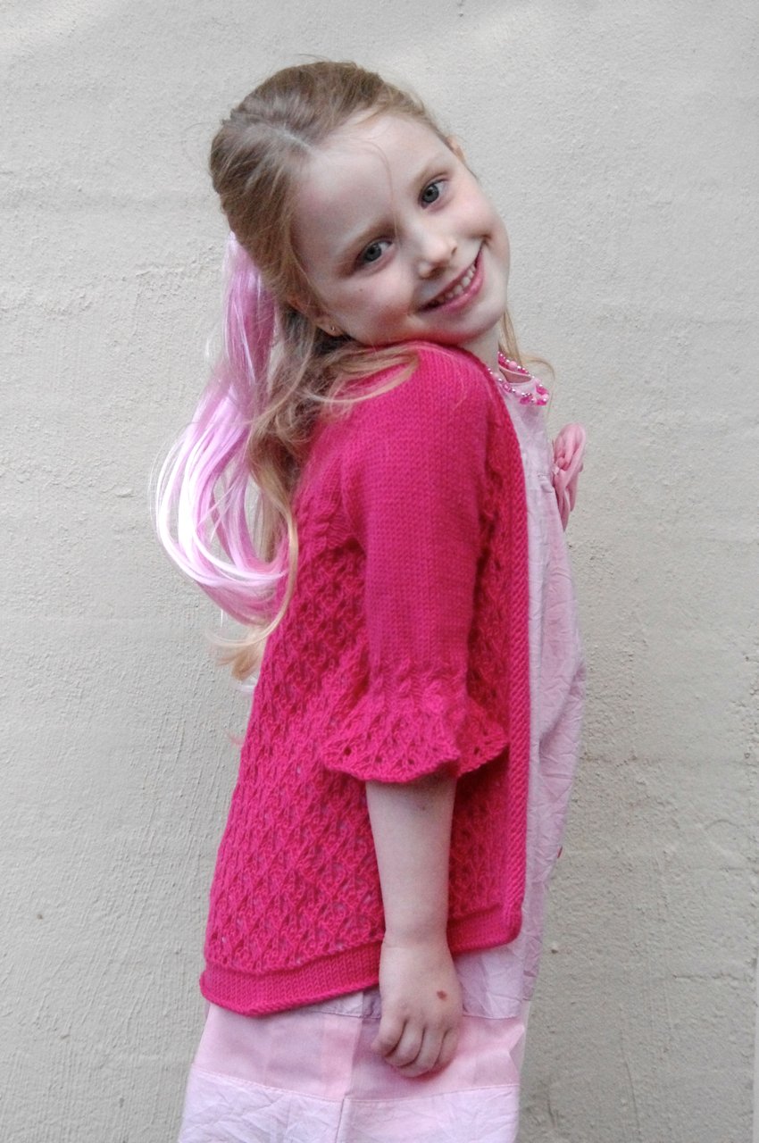 Elizabeth is the perfect little Summer cardigan; open, lacy and lightweight.