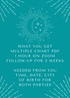 - Zoom Session - will address your specific questions and run through your chart and details with you. Usually 1 hour.