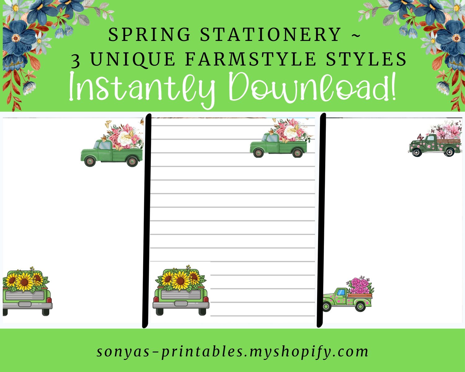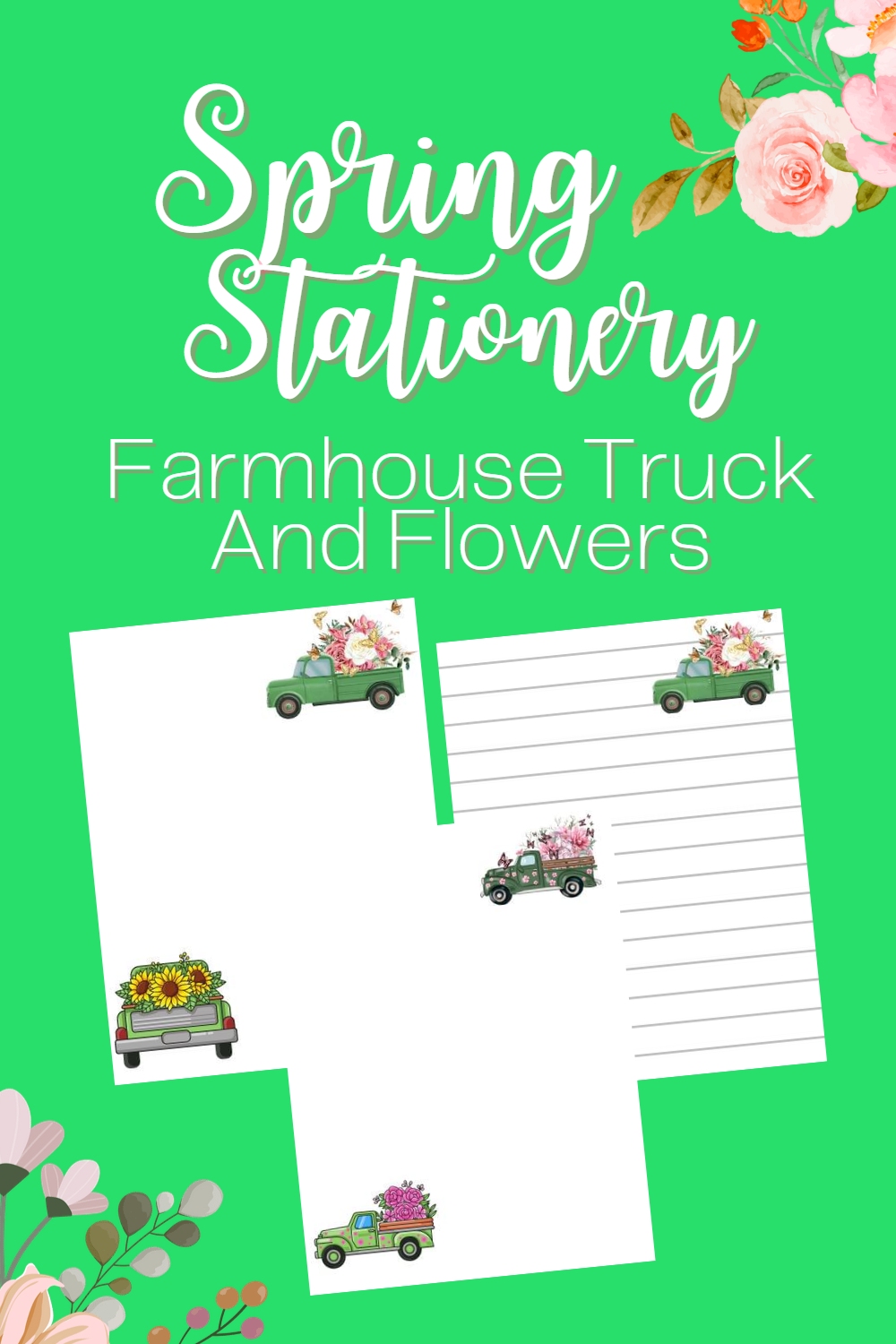 Printable Spring Stationery | Farmhouse Truck Stationery | Country Spring Stationery | Printable Spring Stationery