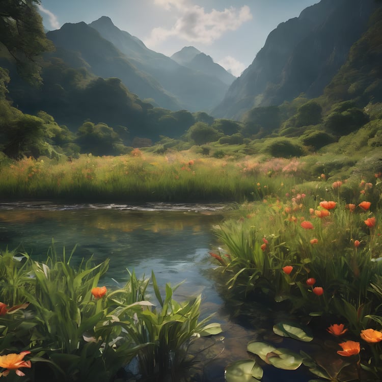 Experience the enchantment of stunning Dreamscapes, meticulously crafted to transport you into a world of imagination and wonder. With name of "Whispering Meadows" this captivating digital art pieces are available in two sizes: 4000px by 4000px and 1024px by 1024px, both in high-quality PNG format.
