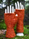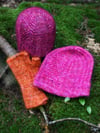 The mitts comes in four sizes (from a 44 stitch cast on to a 56 stitch cast on) and are are written for five gauges (from five and a half to seven and a half stitches per inch in half stitch increments). The hats come in four sizes (from a 96 stitch cast on to a 144 stitch cast on) and are are written for five gauges (from four to six and a half stitches per inch in half stitch increments). That means you can use just about any weight of yarn from fingering up through worsted, and there will be a size to fit pretty much anyone's wrist or head. Basically anything that will give you a fabric with a drape you like somewhere in that range of gauges will work.