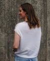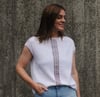 This garment is worked top-down, in a mixture of flat and in the round. Stitches for the back of the neck, shoulder panels and the start of the front are cast on and the piece is worked flat initially, shaping the shoulders and the front of the neck. The front is then joined and the piece is worked in the round, until the shoulder length is reached. Front and back are then worked separately to form the armholes, after which front and back are rejoined to work the body in the round.