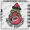 NHL Carolina Hurricanes Team x Grinch Face Holding Ornament Embroidery Designs, Grinch Embroidery Files, NHL Hurricanes Hockey Team Logo Embroidery, Christmas Machine Embroidery Design, Digital Download