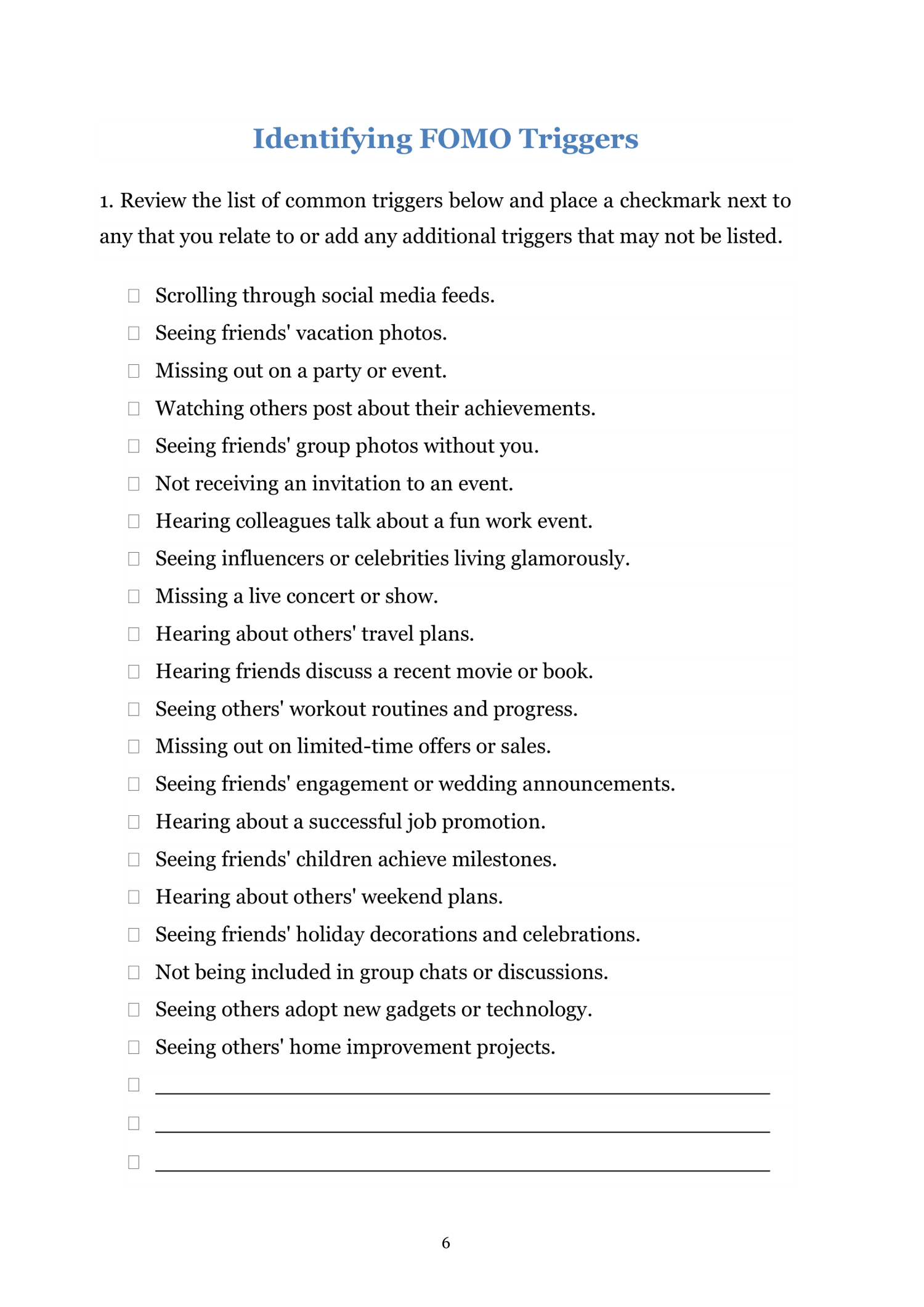 If so, FOMO Worksheets can help you overcome the fear of missing out and take the first step towards a more present and fulfilling life.