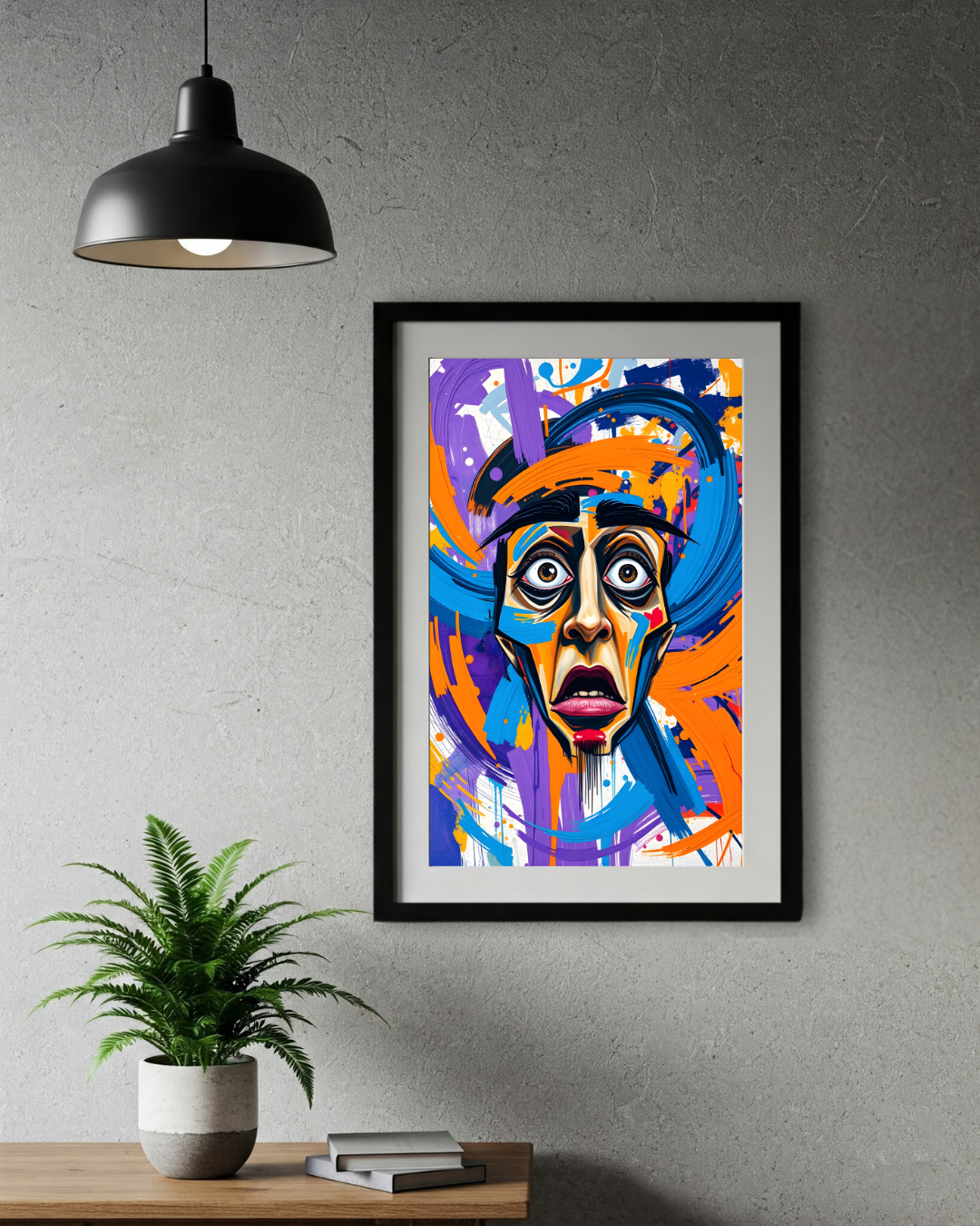 Experience the intensity of human emotion through "Overwhelmed", a bold and expressive digital artwork capturing a surreal moment of shock and chaos. Perfect for modern interiors, digital art collections, or expressive visual storytelling. Available for high-resolution digital download – ideal for printing on canvas, posters, or home décor. Bring the drama of abstract expressionism into your space today.