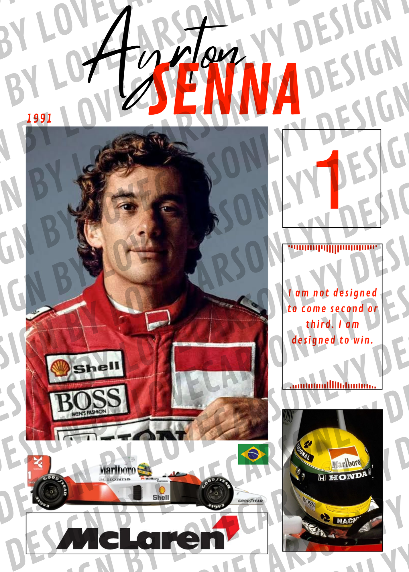 AYRTON SENNA POSTER - 1991 WORLD CHAMPION | MCLAREN DESIGN