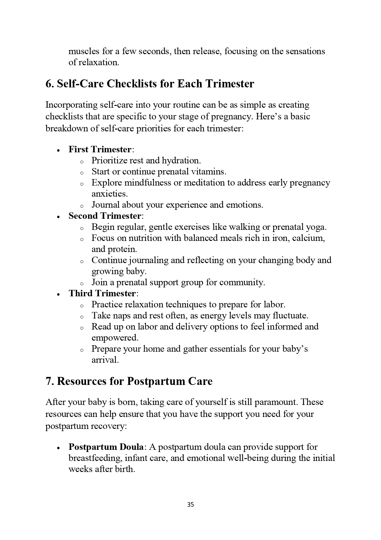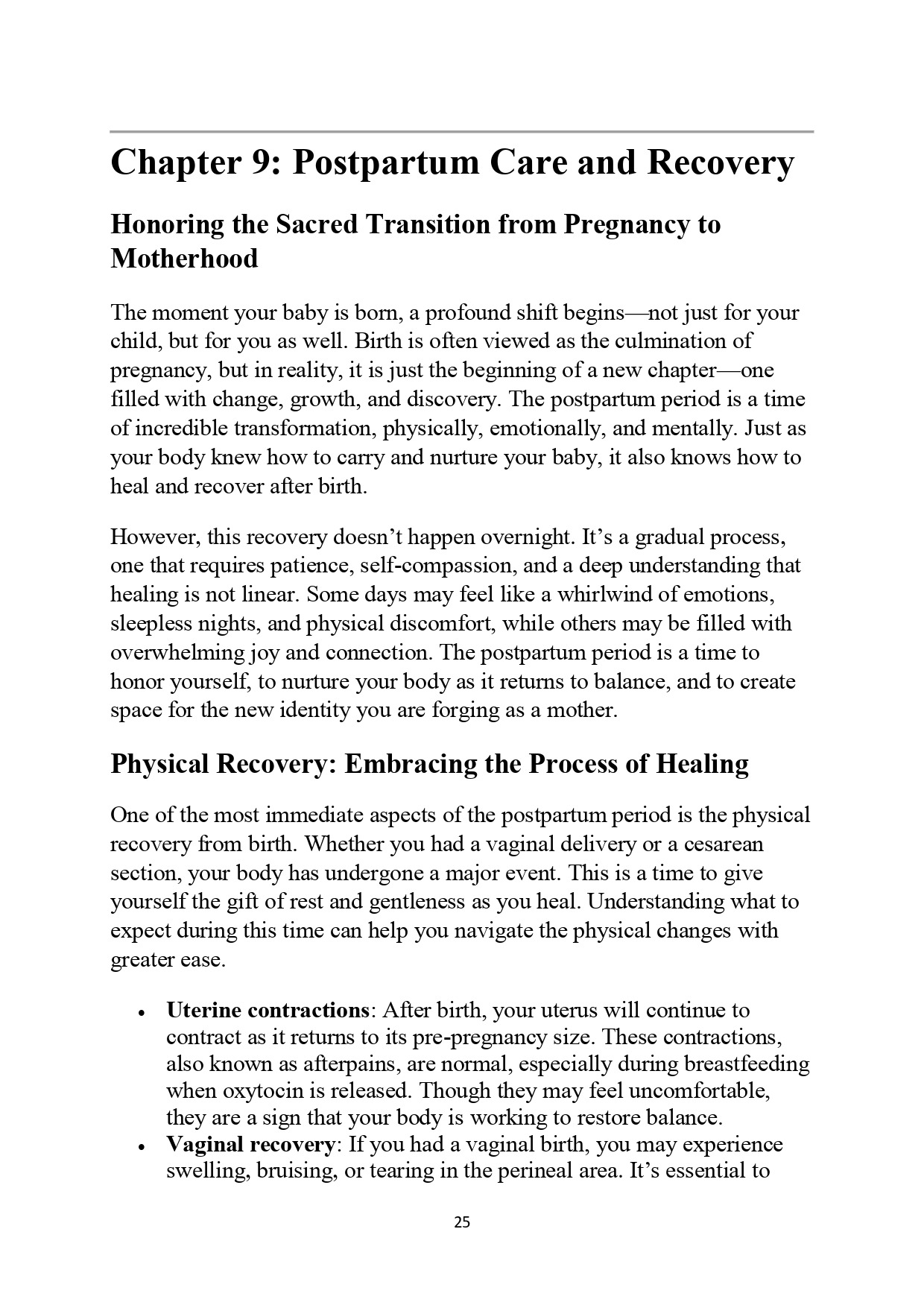 - Postpartum Care: Prepare for the transition into motherhood with postpartum recovery insights, emotional well-being tips, and self-care routines.