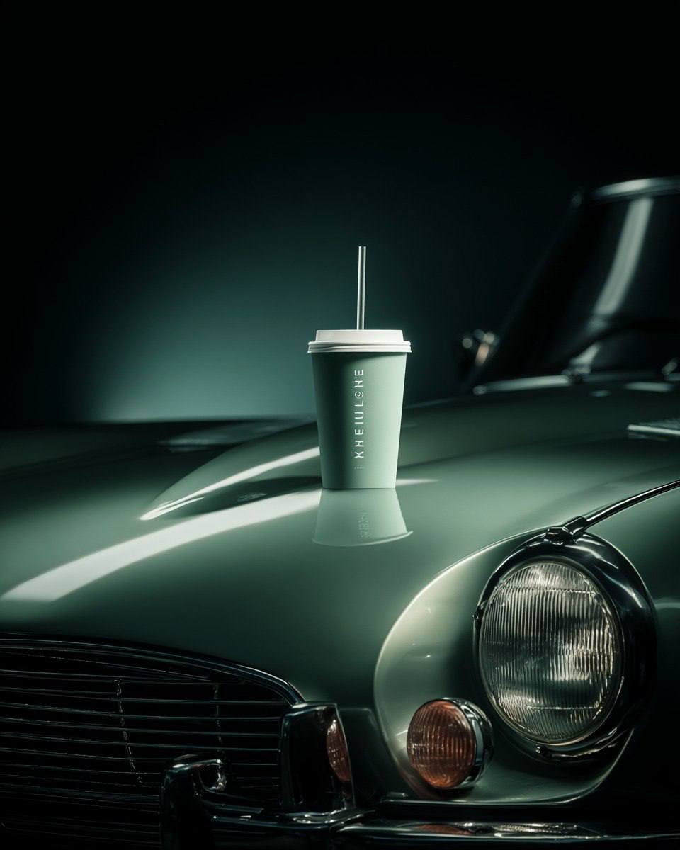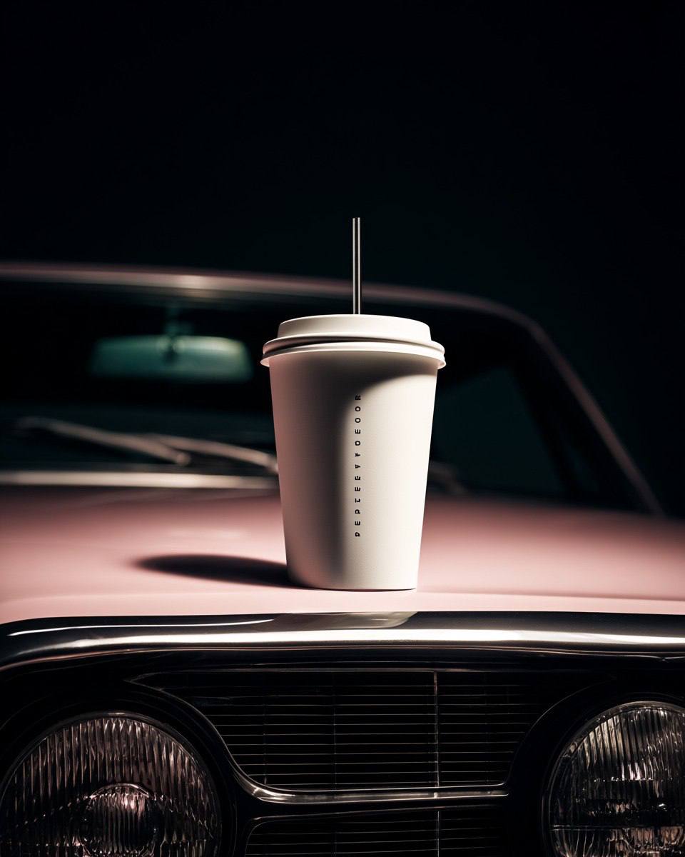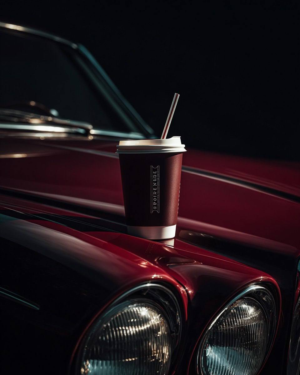 Midjourney Prompt — Luxury Coffee Cup Product Shot | Vintage Car Automotive | Commercial Photography