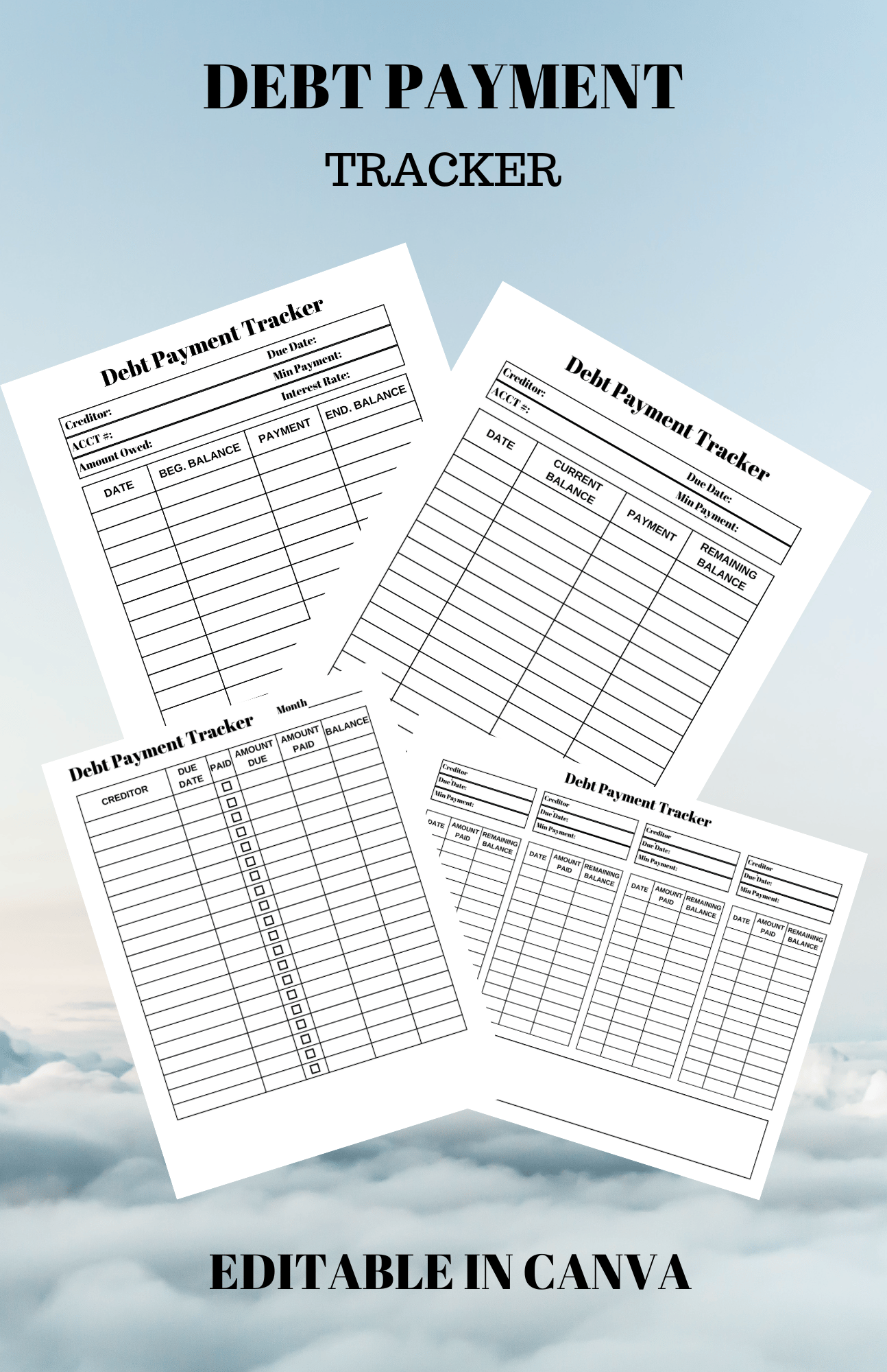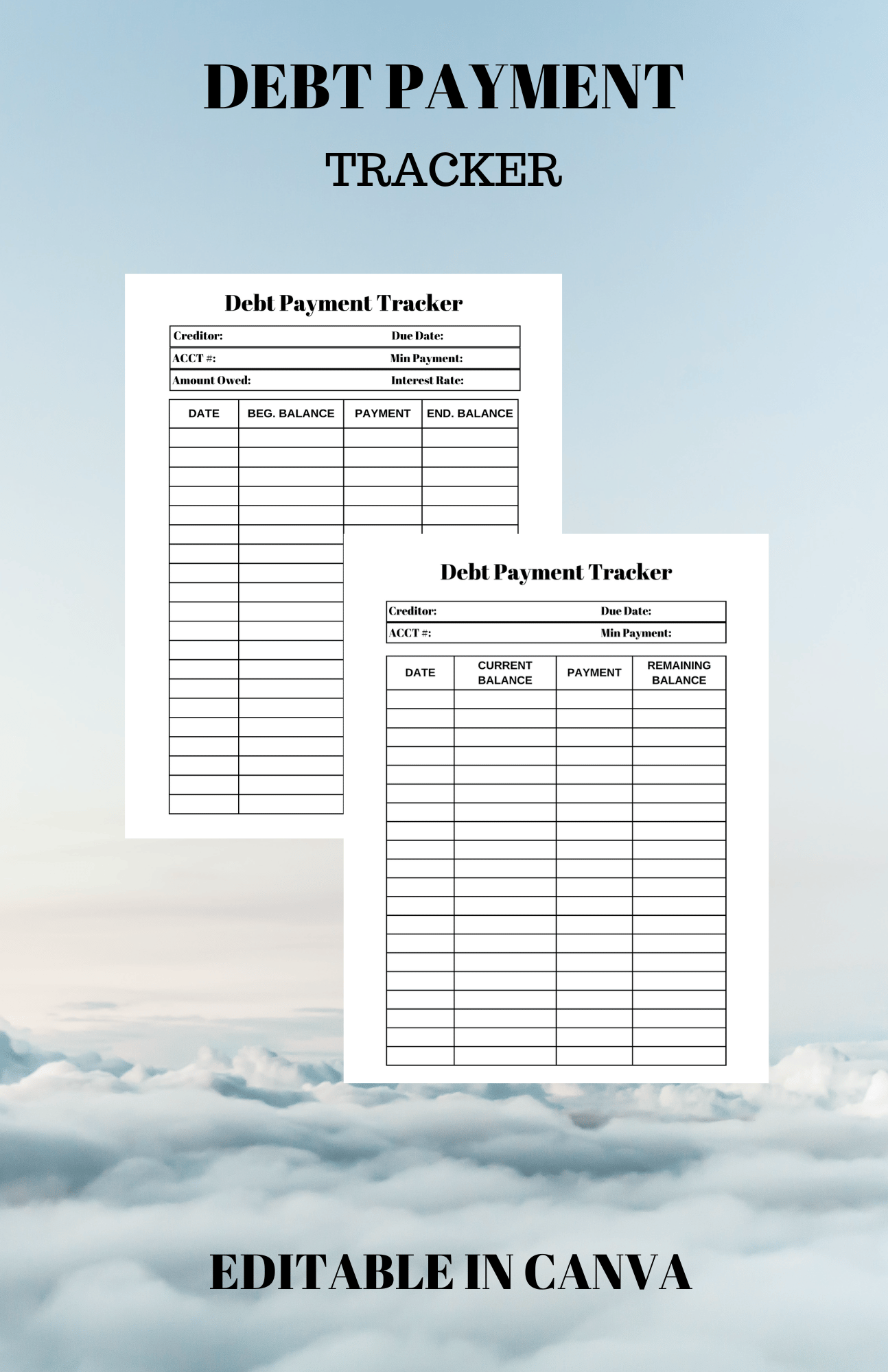 Use these printables for any creditor where you owe a balance and pay monthly. This could be credit cards, car notes, mortgage payments, etc.