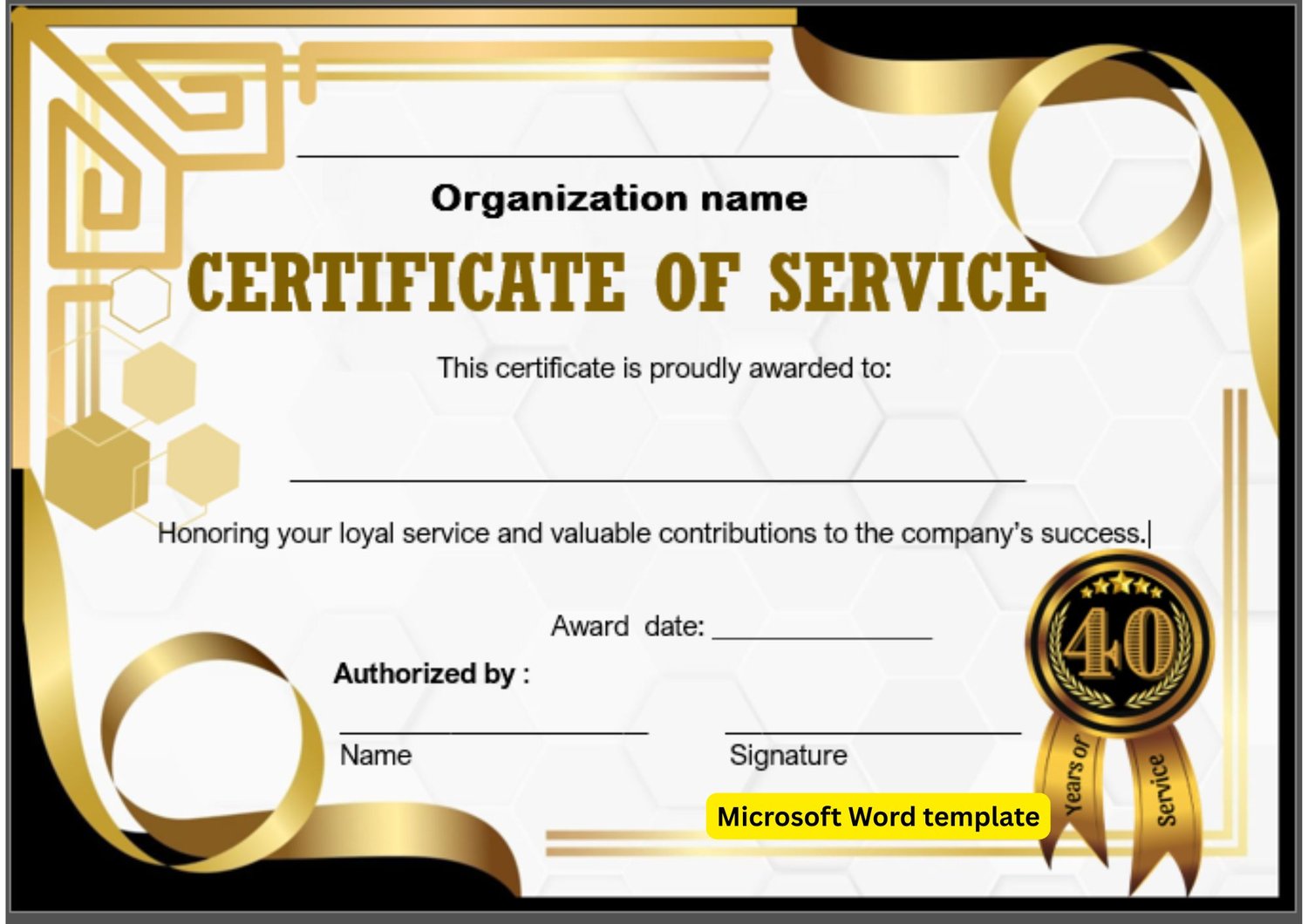 40 Years of service | Editable Microsoft Word template | Landscape G103L400040