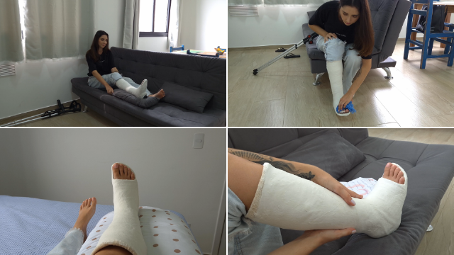 - Getting home, fresh cast, showing off cast, walking on crutches, cleaning toes, making a vlog, wiggling toes, reading the medical prescription and interaction with cast.