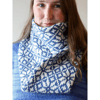 The Snowflake infinity scarf features a tessellating snowflake design based on traditional Scandinavian knitting. The infinity scarf is designed to be long enough to wrap round the neck twice for extra warmth. The Snowflake infinity scarf is knitted as a long tube in the round with the pattern being incorporated using stranded colourwork. The tube is seamed at the end after blocking.
