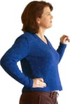 This basic pullover, with a touch of waist shaping, is knit in pieces from the hem up, then seamed. The cabled side of the neckline is knit with the front, and then the seed stitch edging is added later across the top of the back back and along the opposite side of the neck.