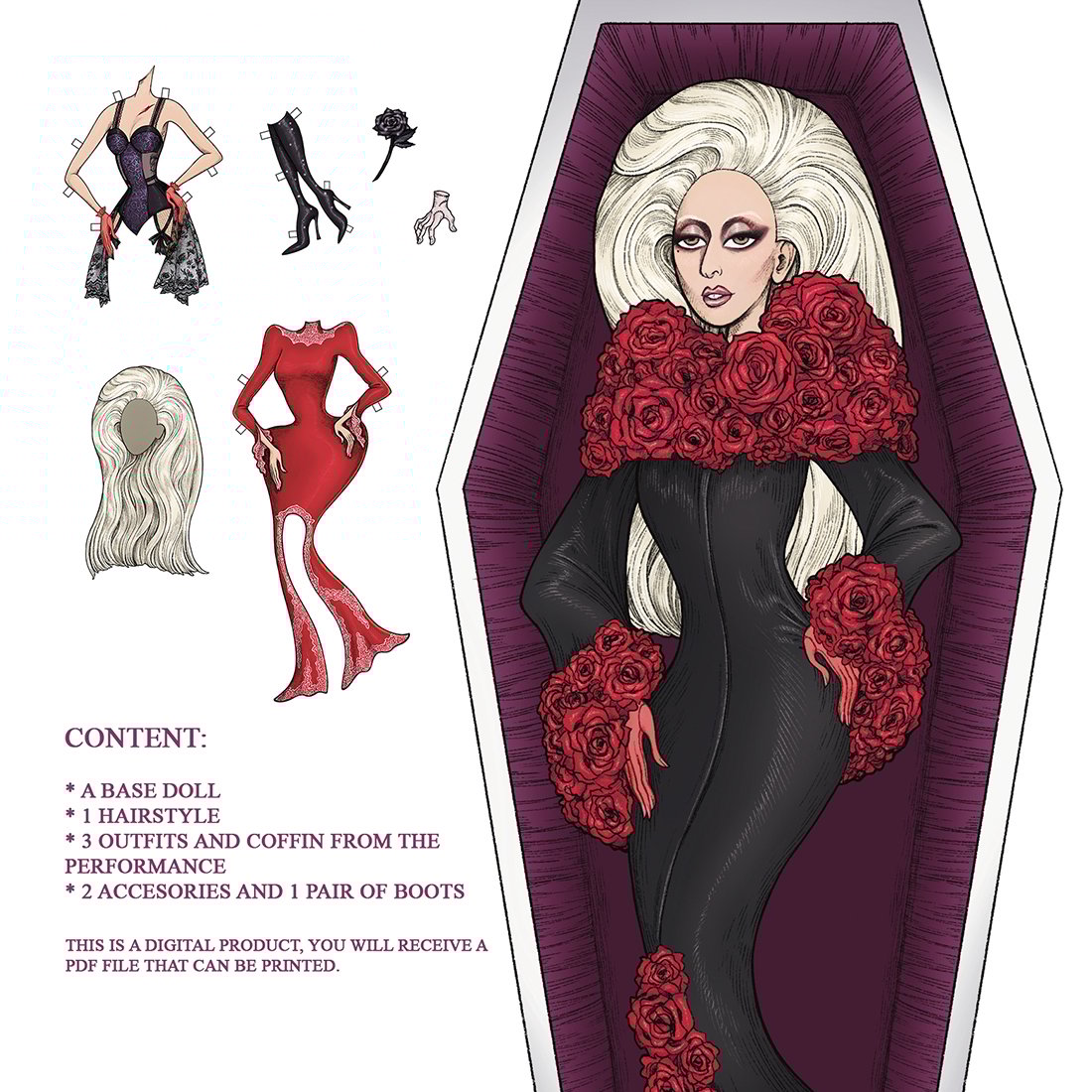 Printable Paper Doll – Lady Gaga TUDUM 2025 Edition (Digital Download – PDF)