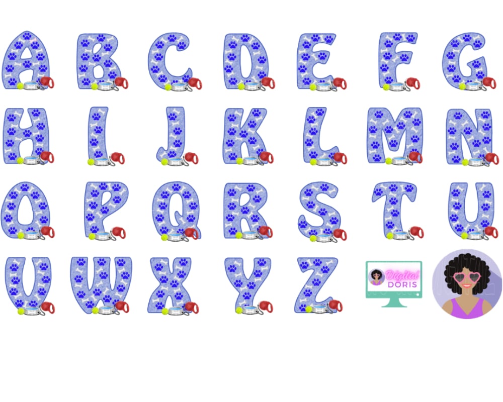 Blue Doggy Paw Alphabet Set Digital Download 26 PNGs