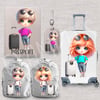 Travel girls Chibi doll. 2 dolls; long and short hair, blonde, brunette, Titian, red, black and grey. Blue, green, brown and grey eyes. 6 coloured t shirts and suitcases to mix and match. Both dolls are blonde and blue eyed as standard, simply add clipart to change eye, hair, t shirt and suitcase colours to customise and personalise your dolls.