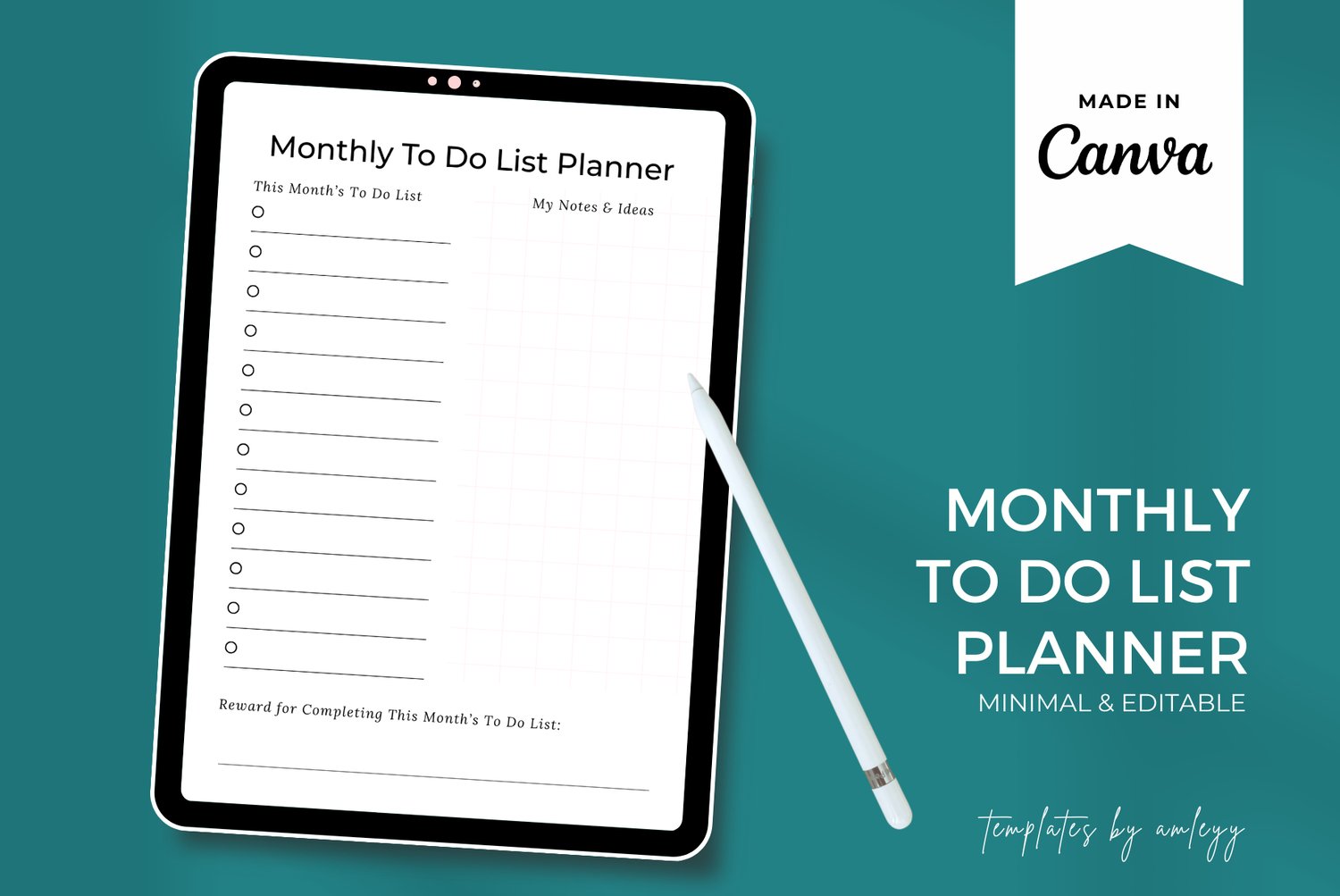 Monthly To-Do List Planner Template | Printable & Editable Canva Planner | Productivity Organizer | Minimalist Monthly Task Tracker