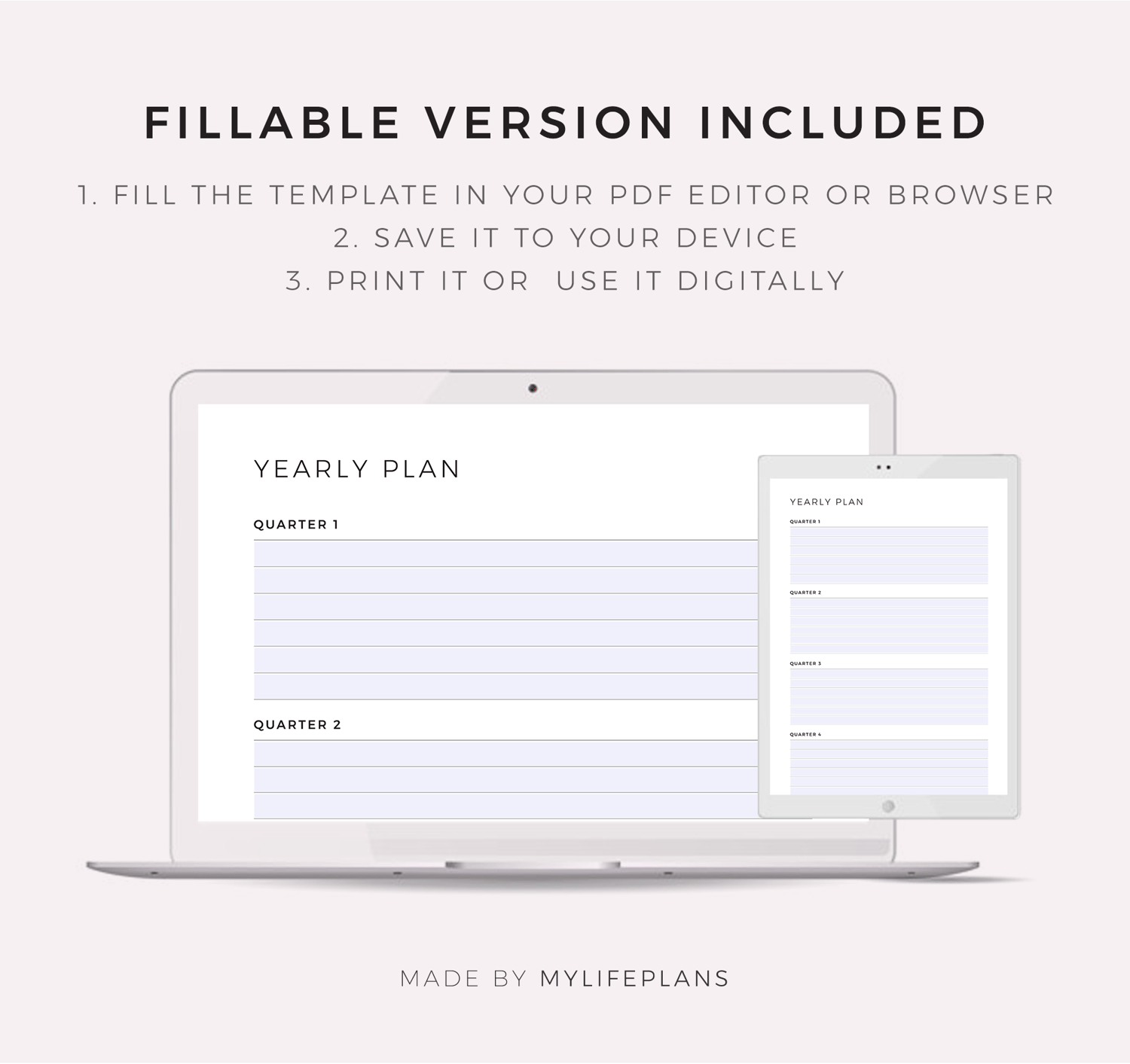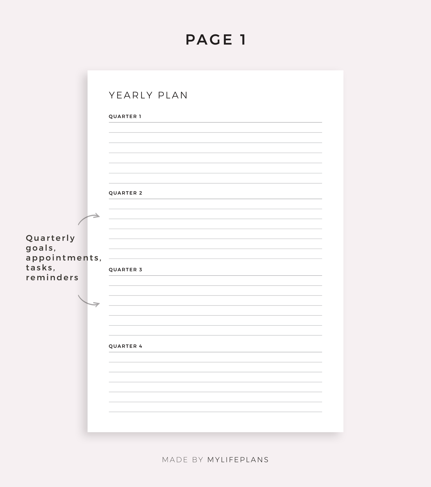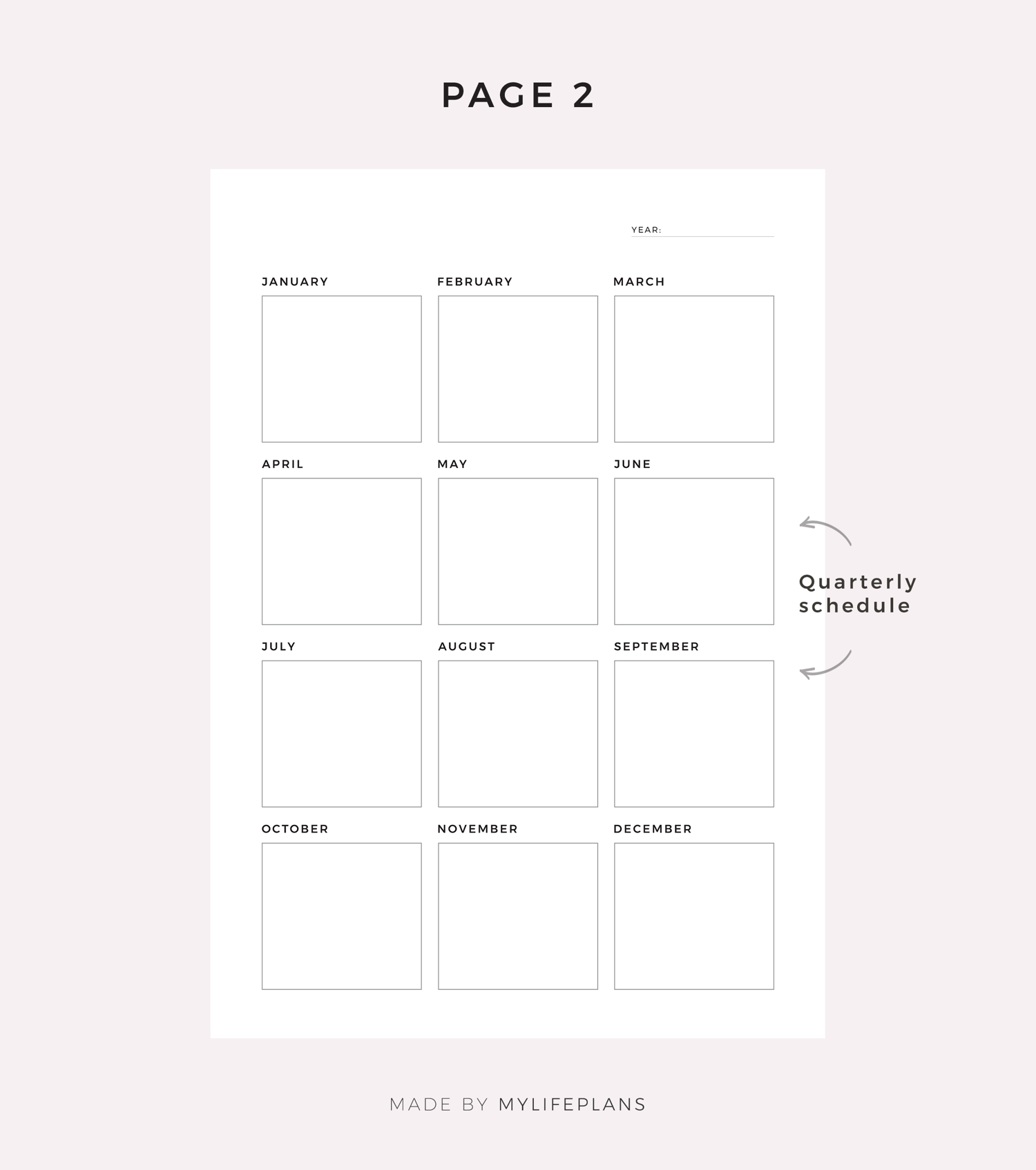 This is a printable yearly planner — just download, print, and start using it right away.