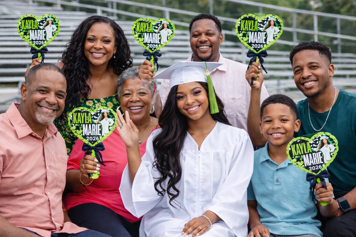 Add your grad’s name, photos, school colors, and more for a luxe, coordinated look