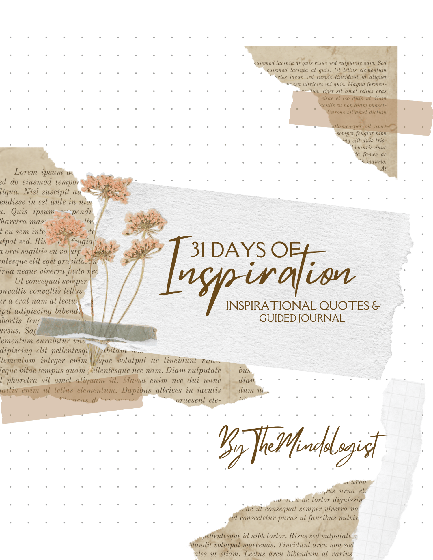 Discover daily inspiration and mindfulness with TheMindologist's 31 Day Inspirational Quotes & Guided Journal. This elegantly designed journal pairs powerful quotes with reflective prompts, fostering personal growth and self-awareness. Each day offers a new opportunity to explore your thoughts and emotions, guiding you on a transformative journey of introspection and self-discovery.