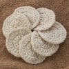 This Bathroom set is made with 100% cotton so that it can be used, washed and reused.There are face scrubbies with a basket to keep the clean ones in and a bag to wash the used ones in.