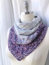 Two strands of fingering weight yarn held together make this cowl a cute quickie project! The simple fade effect is achieved by swapping out one strand at a time for the second color.