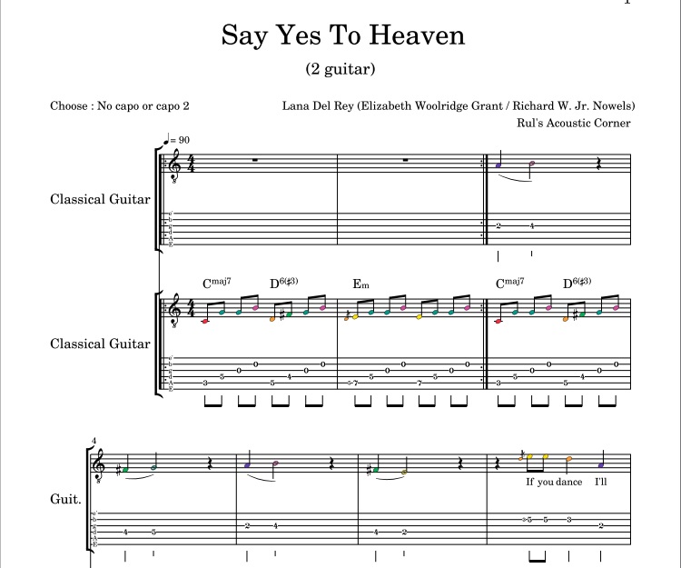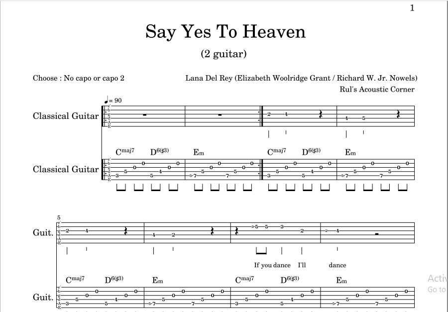 Sampel Lesson Instrumental Lana Del Rey - Say Yes To Heaven 2 Guitar Musical Notes Tabs High Quality PDF Video Tutorial Download
