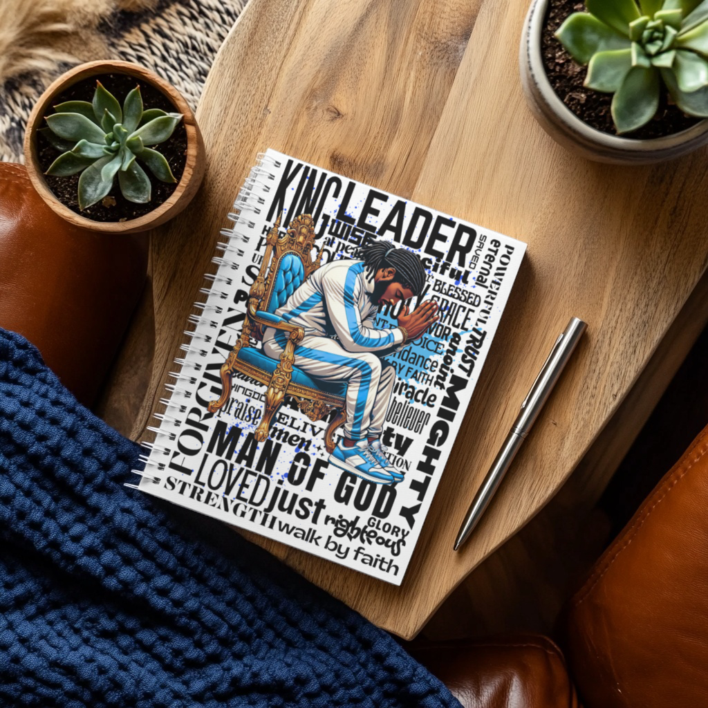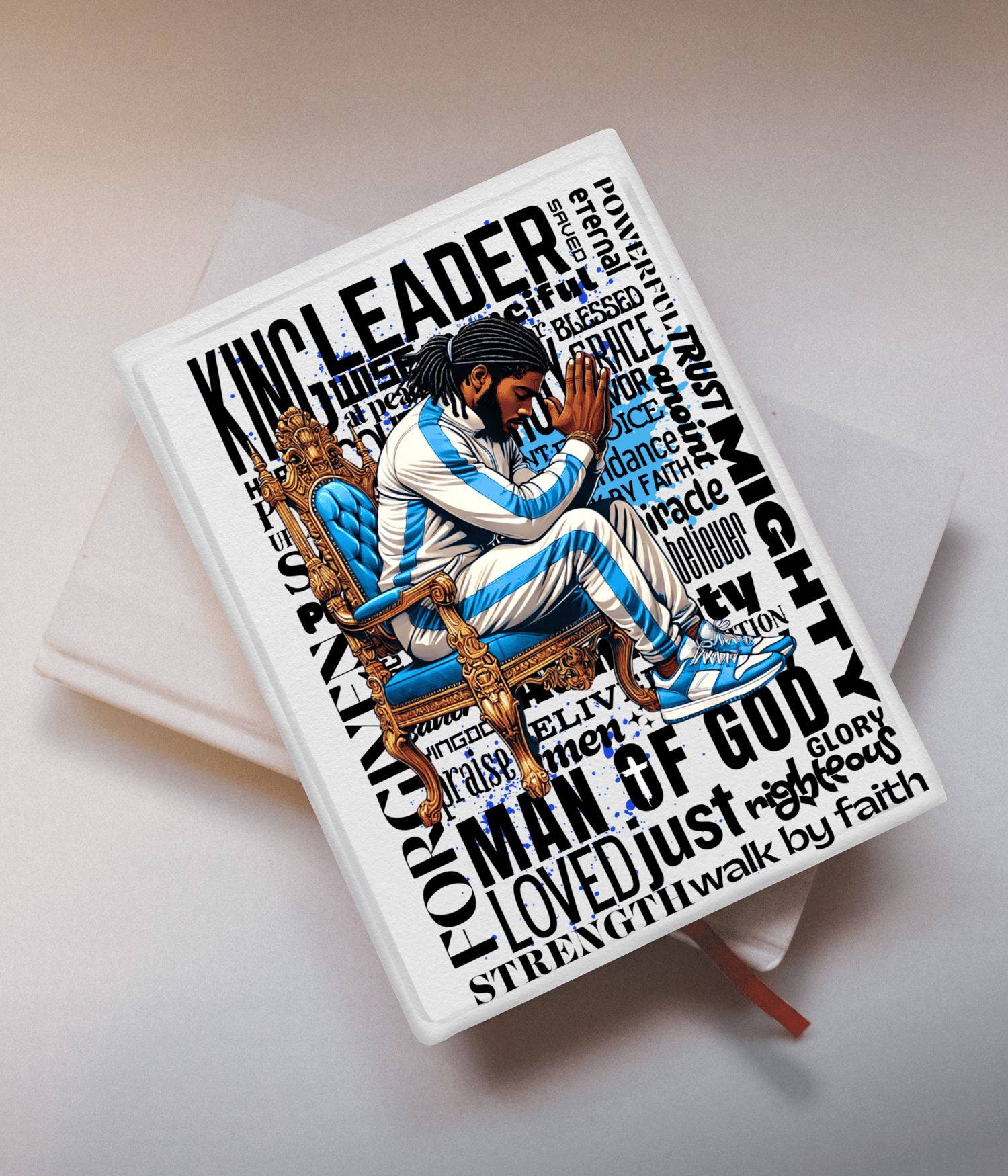 Celebrate faith, strength, and leadership with this powerful and visually striking digital journal cover. Featuring a highly detailed Afro-American man in prayer seated on a royal throne, this 5x7 design is perfect for journaling, devotionals, or gifting to a faith-driven loved one. Bold faith words like “KING,” “FORGIVEN,” and “WALK BY FAITH” create a powerful, layered backdrop that radiates empowerment.