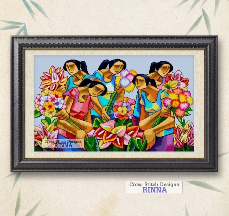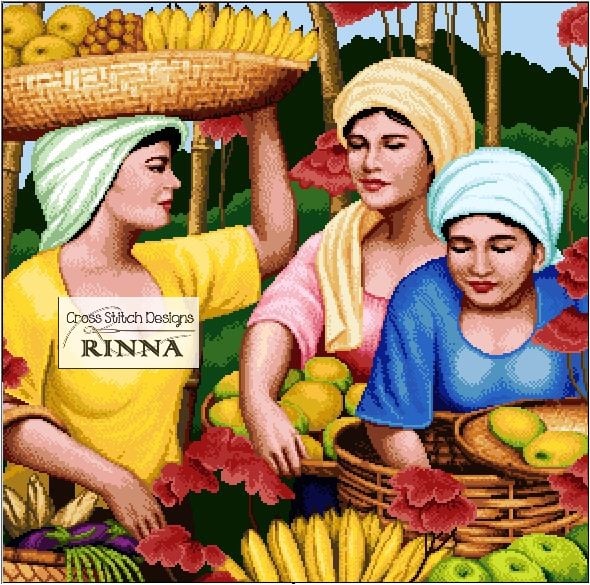 Filipino Art - Mga Tindera ng Prutas - Cross Stitch PDF PATTERN Downloadable File